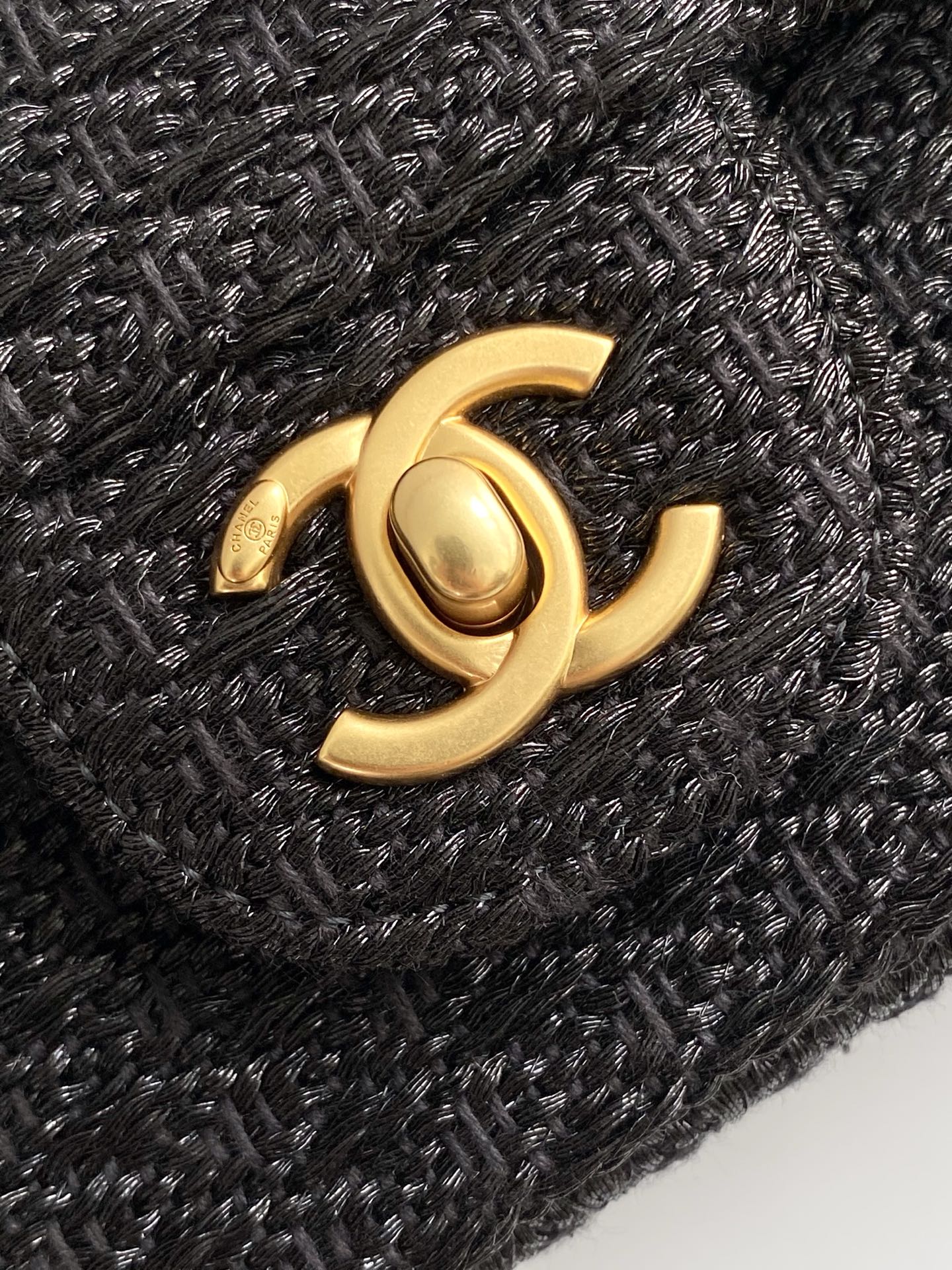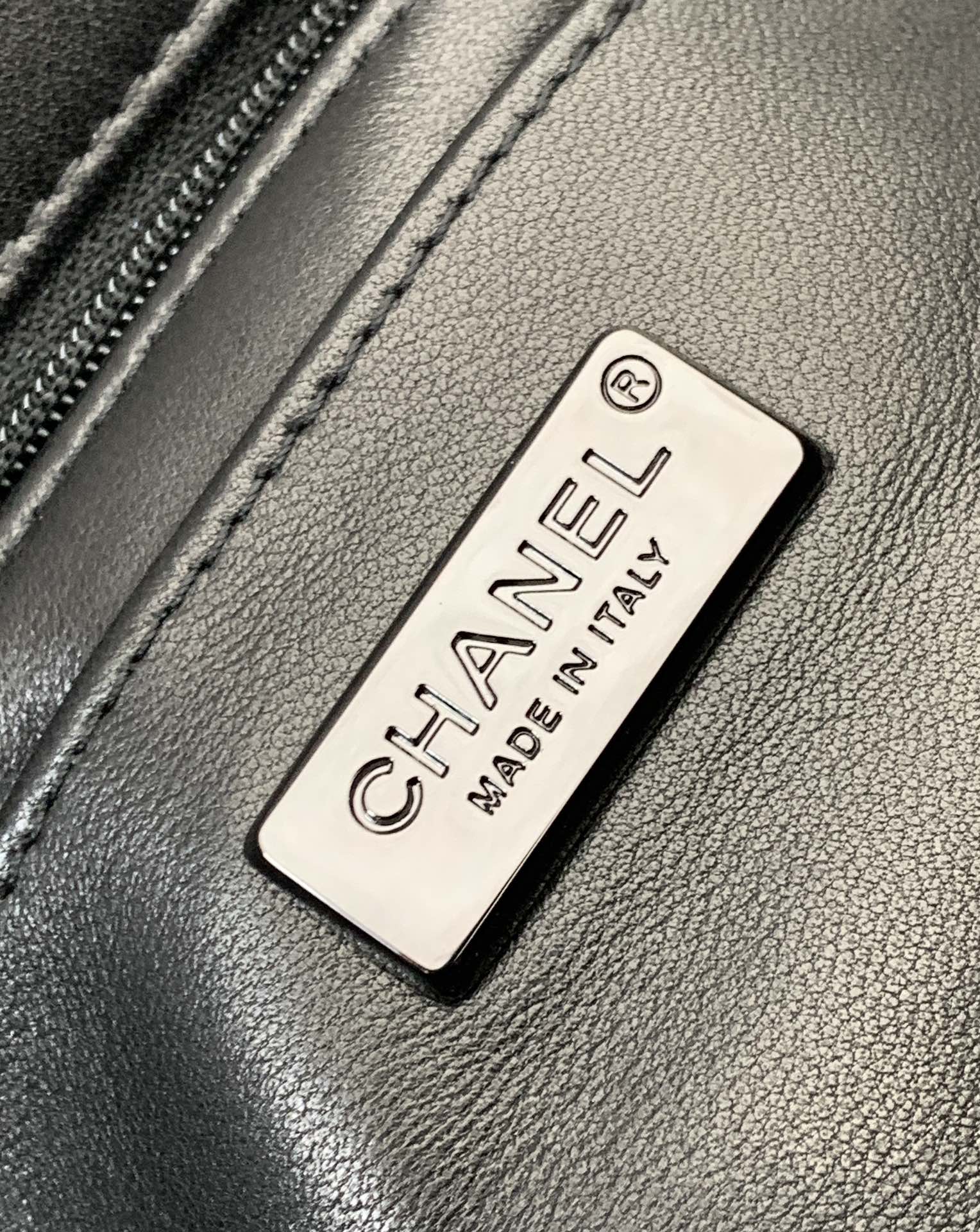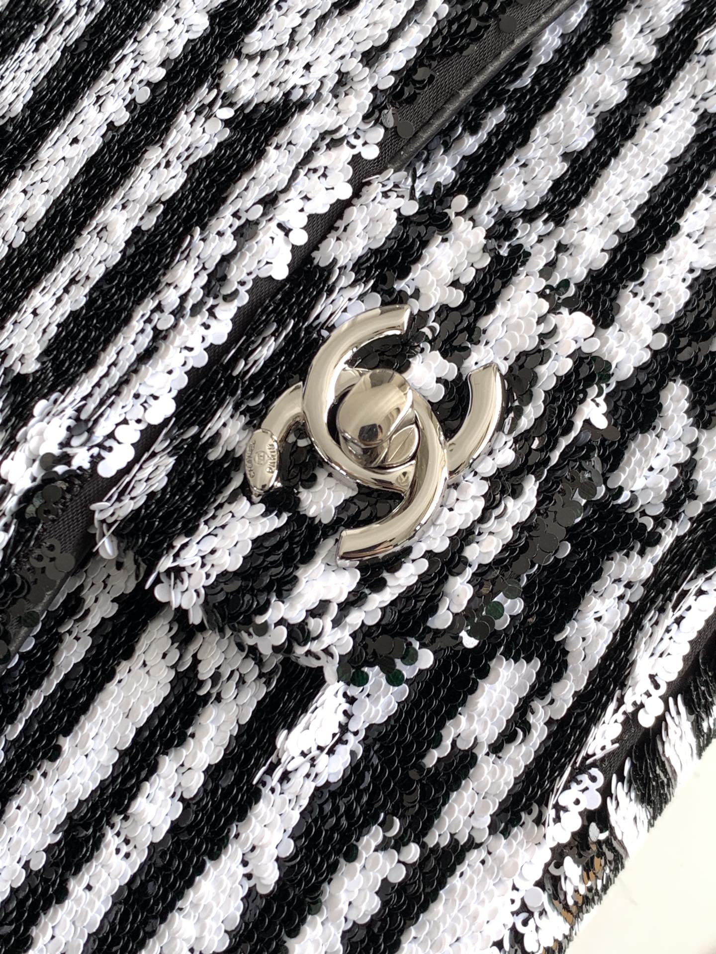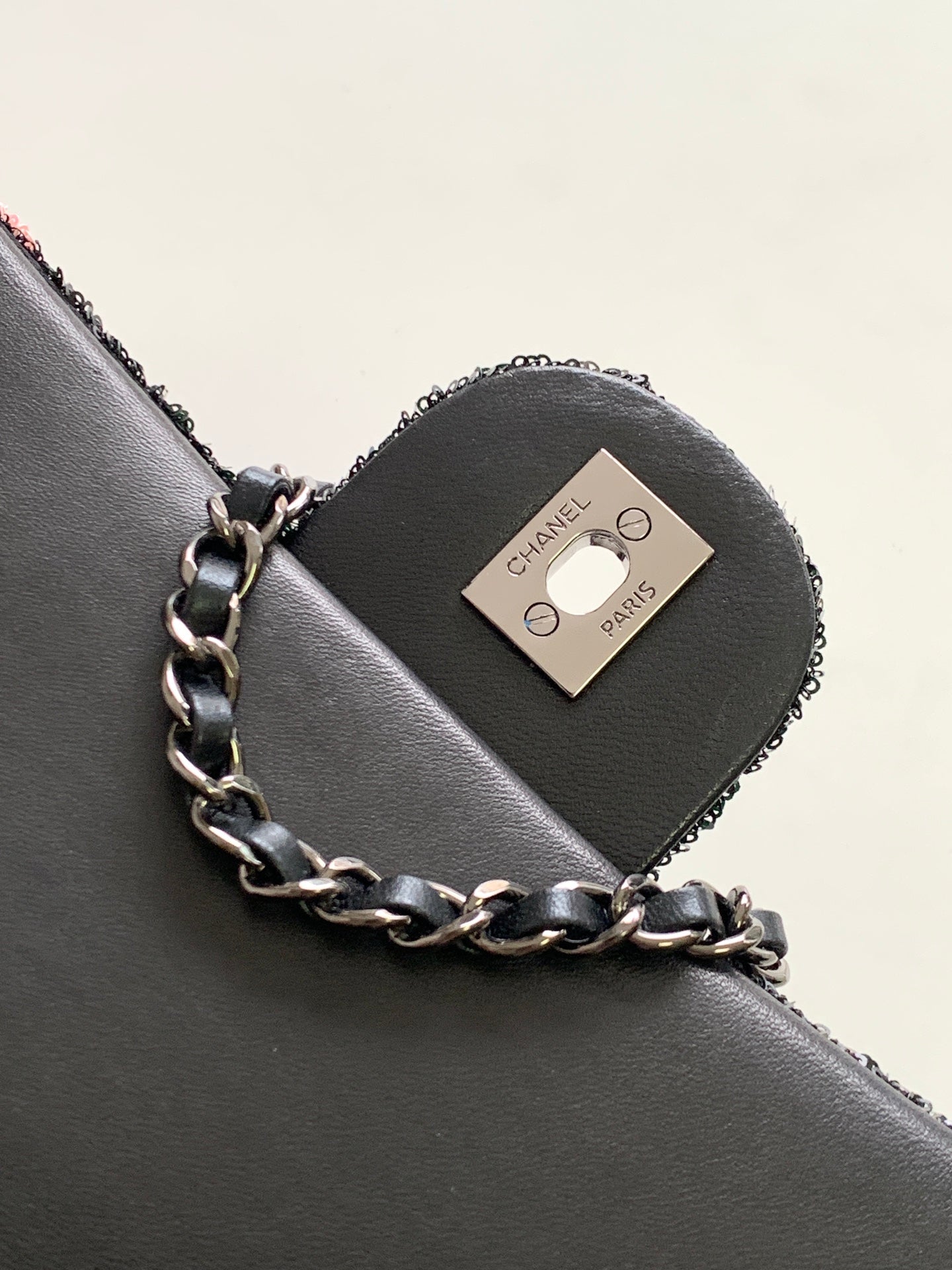 cc 25S Flap Bag 21cm Black Silver Sequin Calfskin