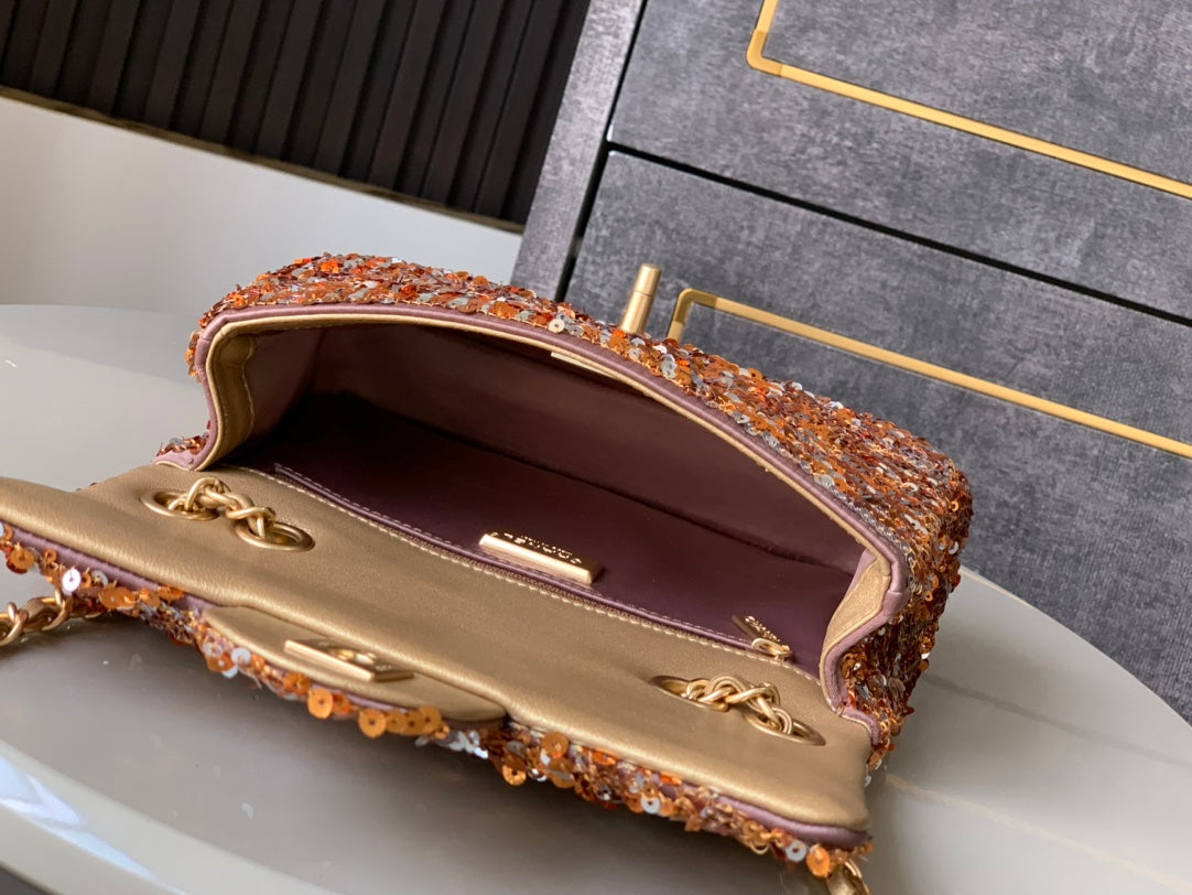 Flap Bag Mini 20cm Beige Calfskin Gold Bronze Sequin