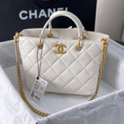 CC 2Way Chain Shoulder Tote Bag White Leather