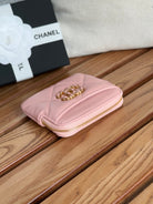 cc 19 zipped coin purse 11cm pink lambskin gold hardware