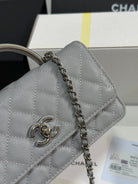 CC 25P Wallet Woc Handle 17cm Light Gray Leather Silver Hardware 243436