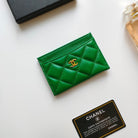 CC CARD HOLDER 11.2 GREEN CALFSKIN GOLD ICON