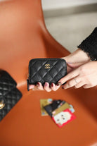 CC ZIPPED COIN BASIC PURSE 11 BLACK CALFSKIN GOLD ICON