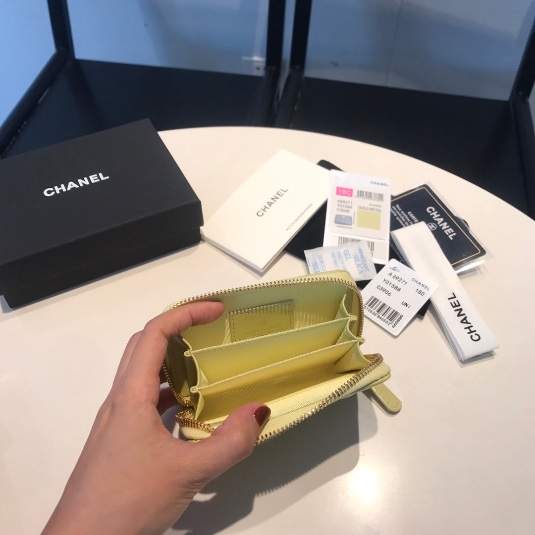 CC ZIPPED COIN BASIC PURSE 11 LIGHT YELLOW CALFSKIN GOLD ICON
