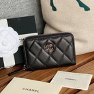 cc zipped wallet 7.5 cm black calfskin silver hardware