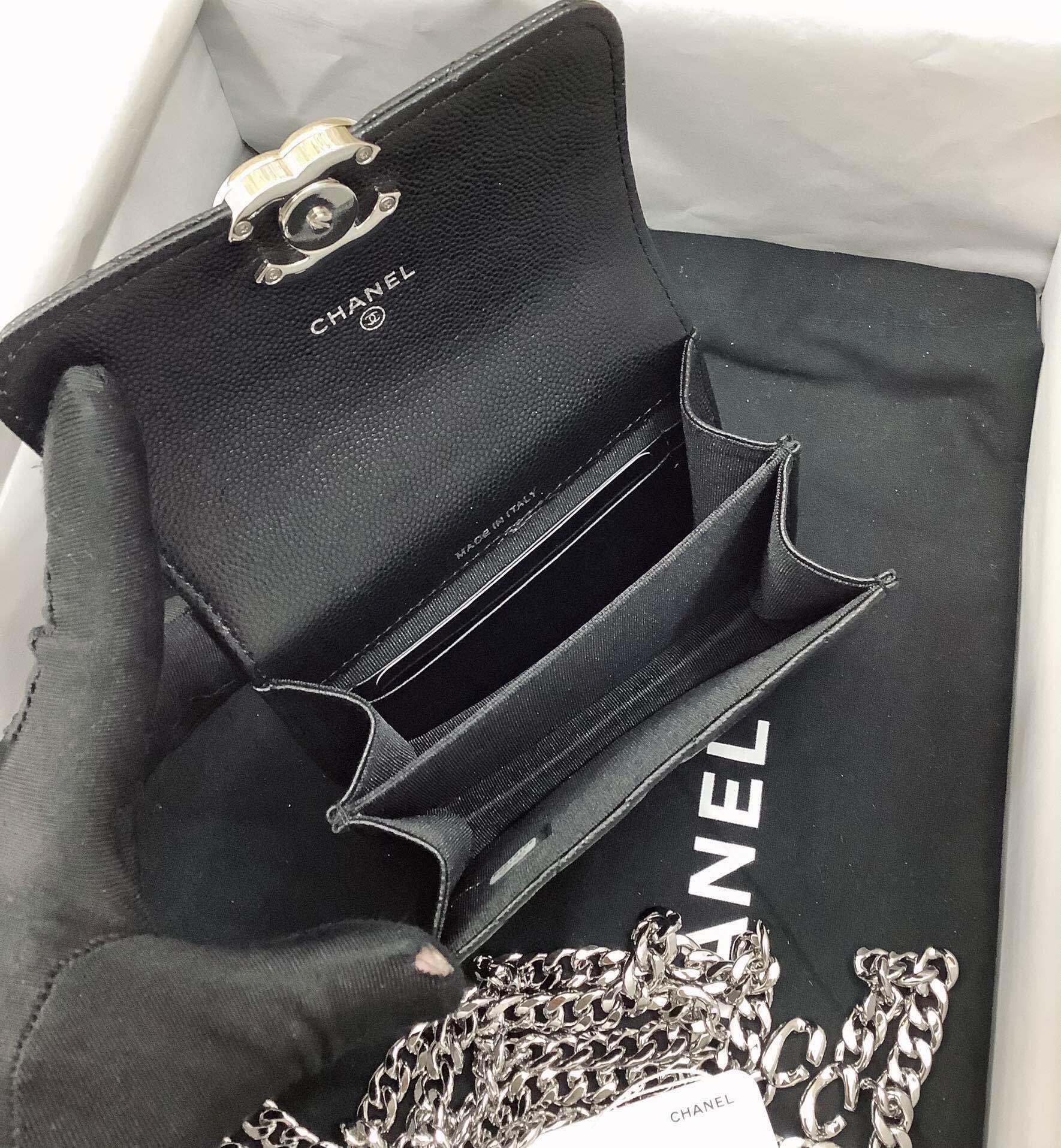 cc mini woc 13cm with top handle black quilted caviar leather silver hardware