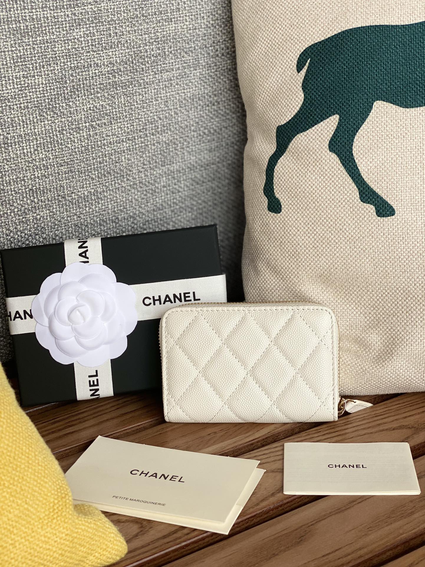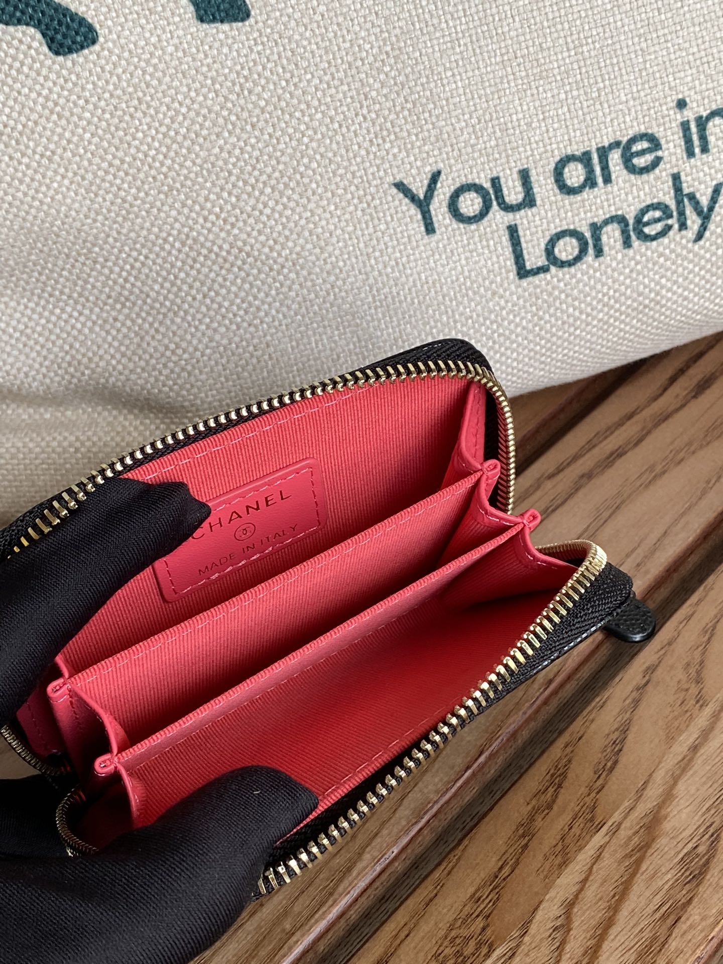 cc 19 zipped wallet 20cm black calfskin gold hardware