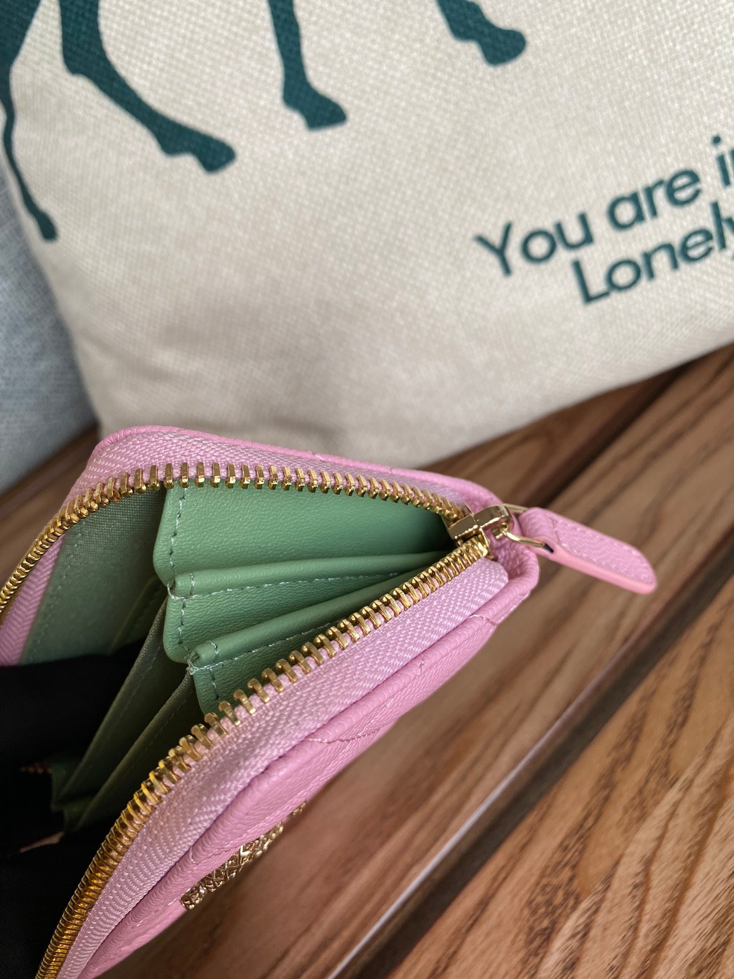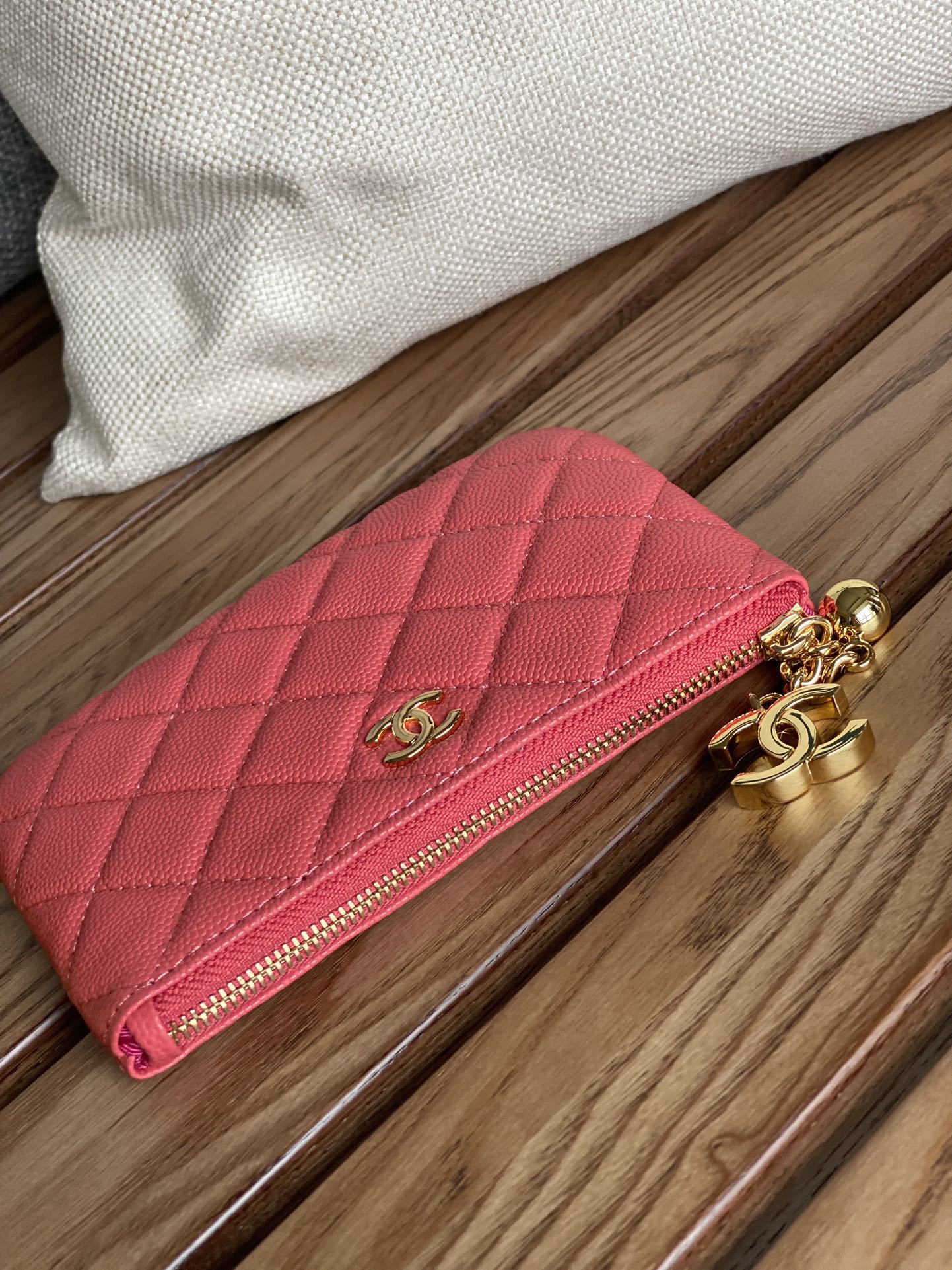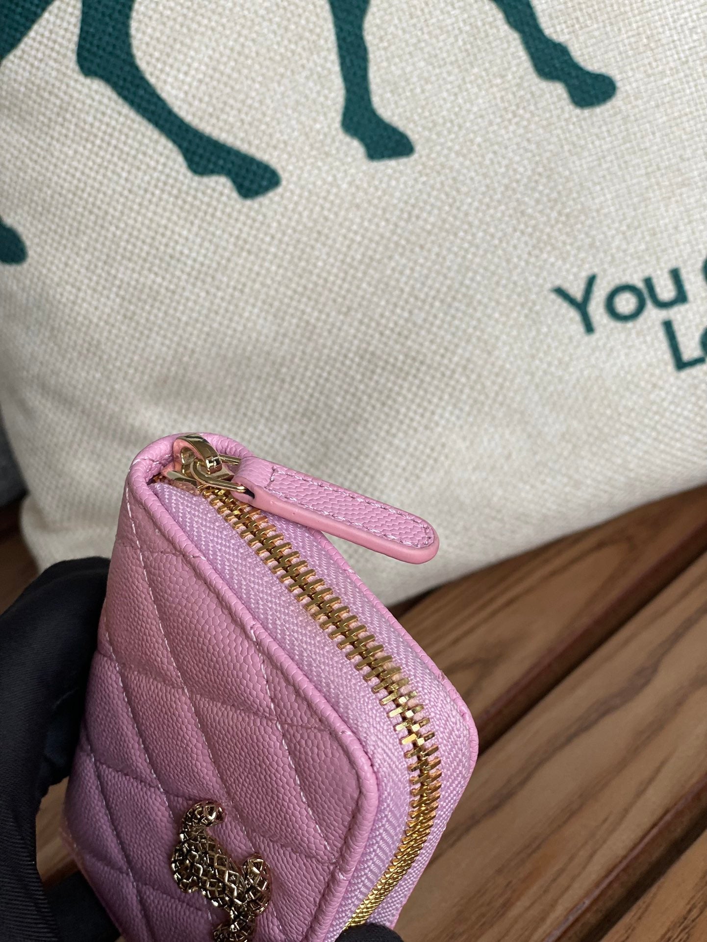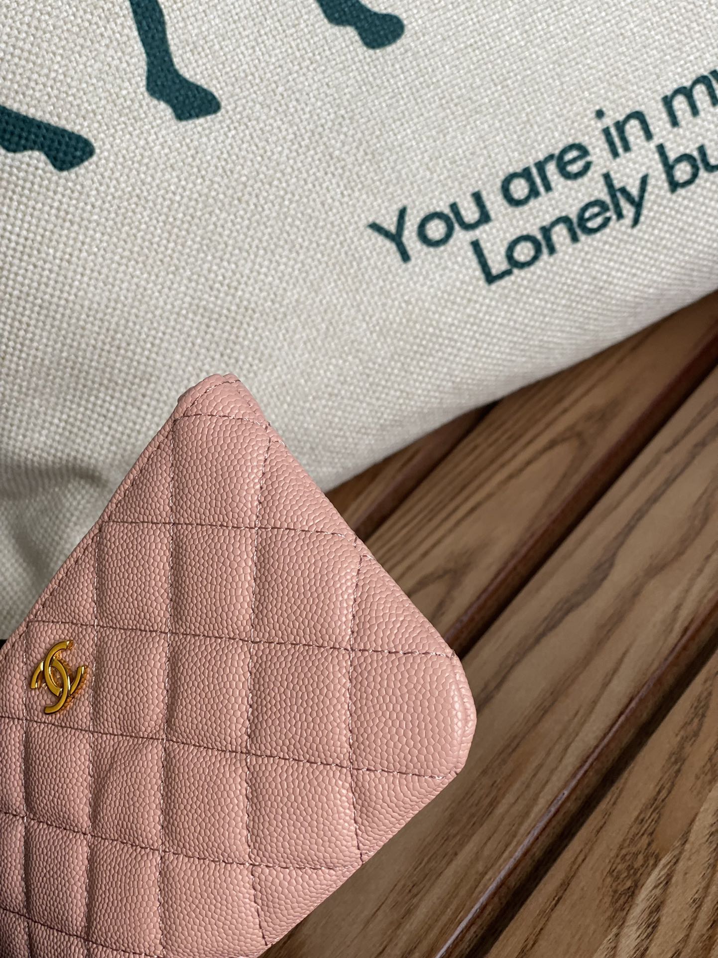 cc 19 zipped wallet 20cm light pink calfskin gold hardware