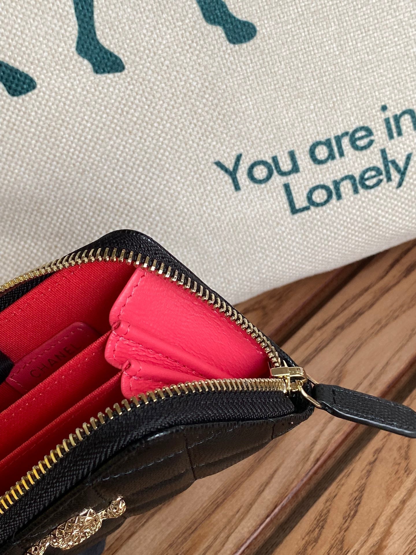 cc 19 zipped wallet 19.5cm black calfskin gold hardware