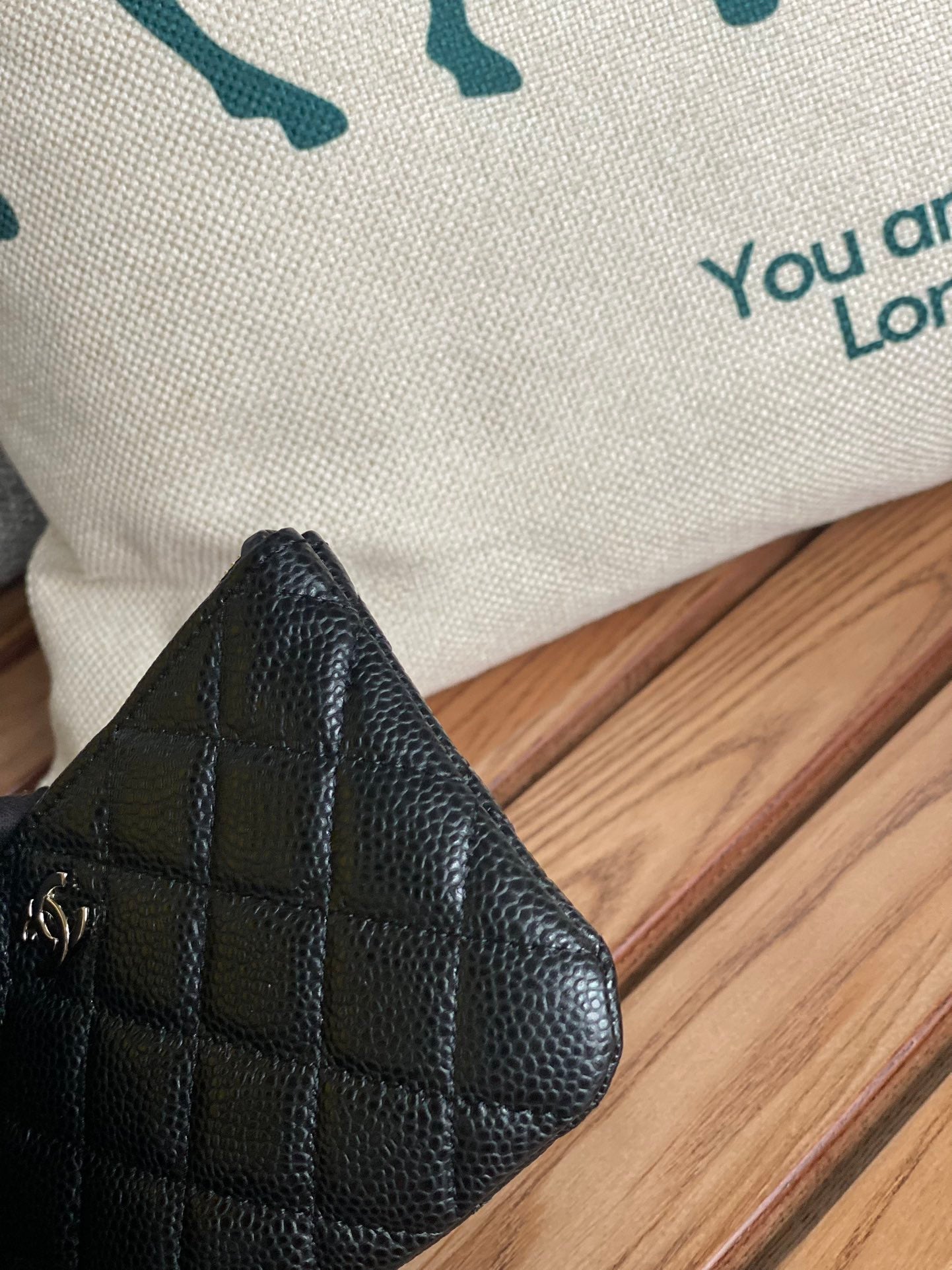 cc zipped wallet 20cm black quilted caviar silver hardware