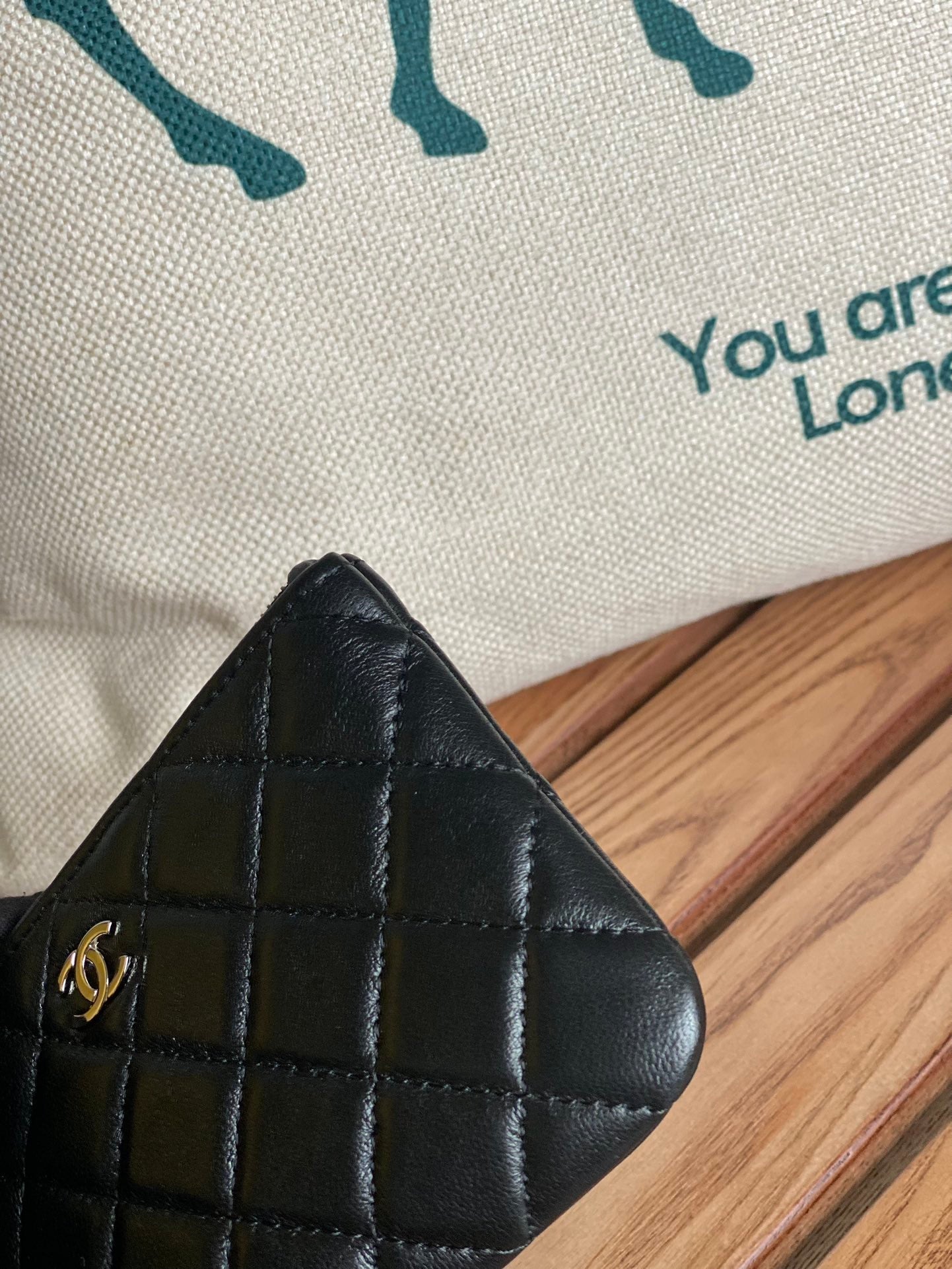 cc zipped wallet 20cm black quilted calfskin gold hardware
