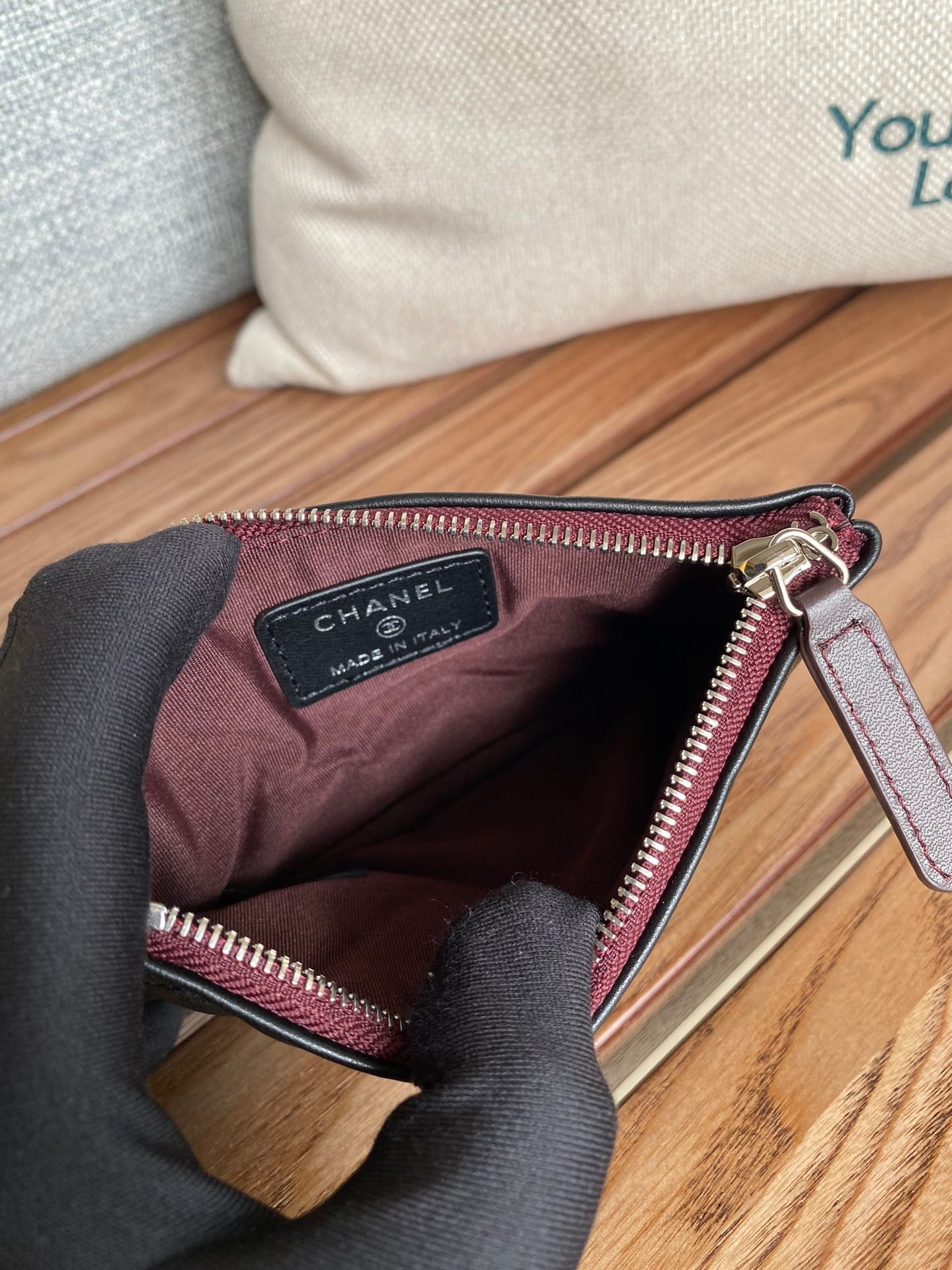 cc zipped wallet 20cm black quilted calfskin silver hardware