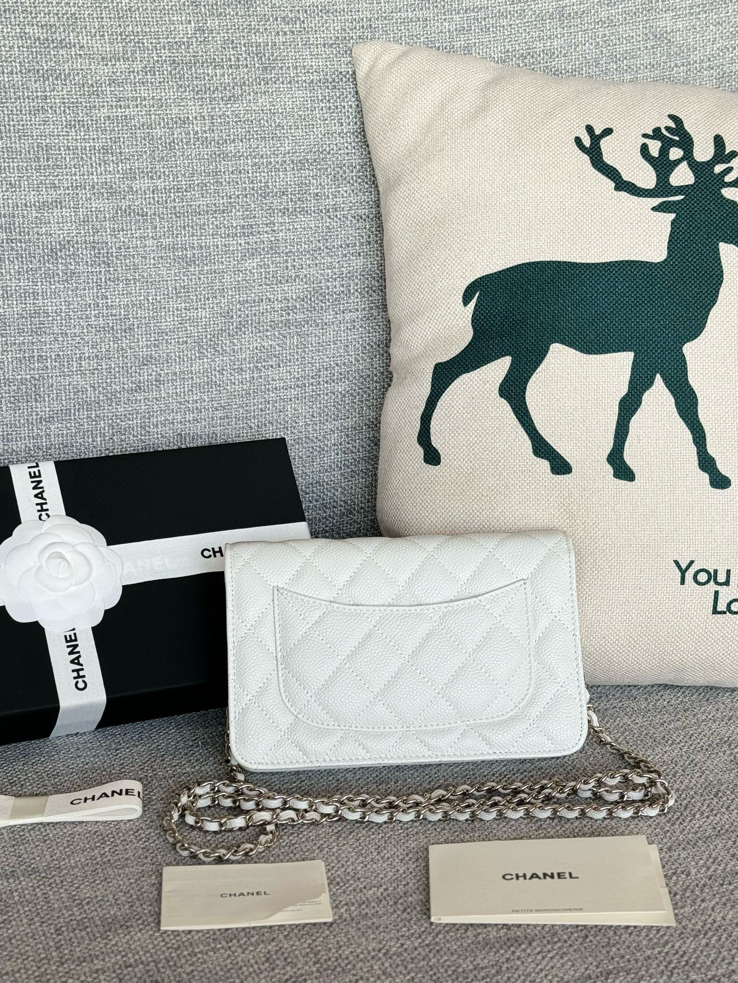 CC WOC 19 WHITE LAMBSKIN SILVER HARDWARE