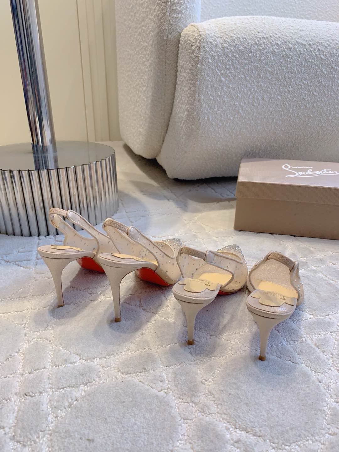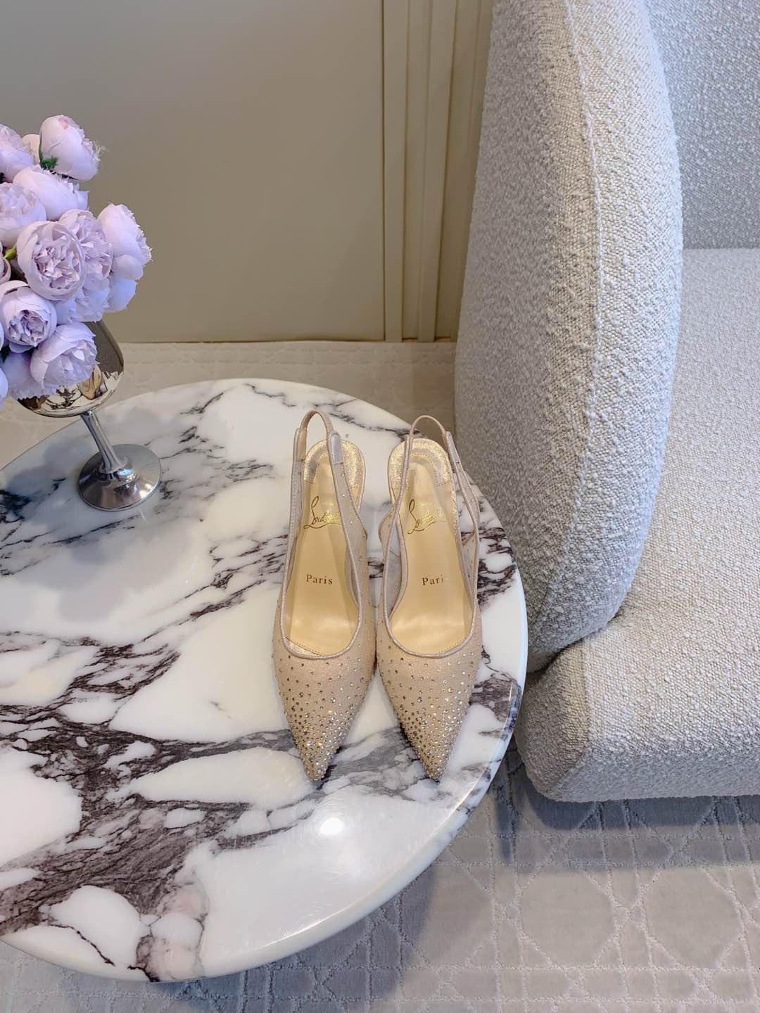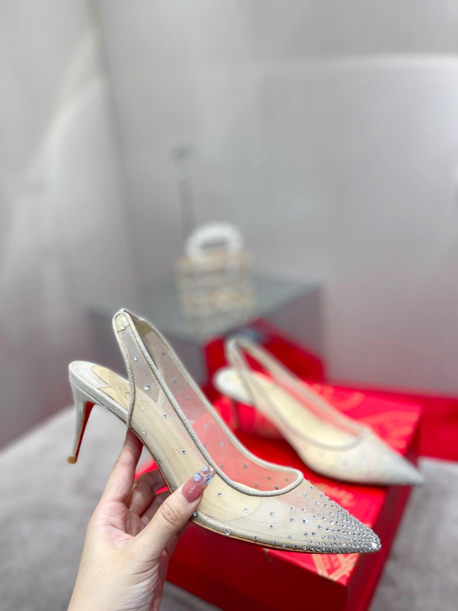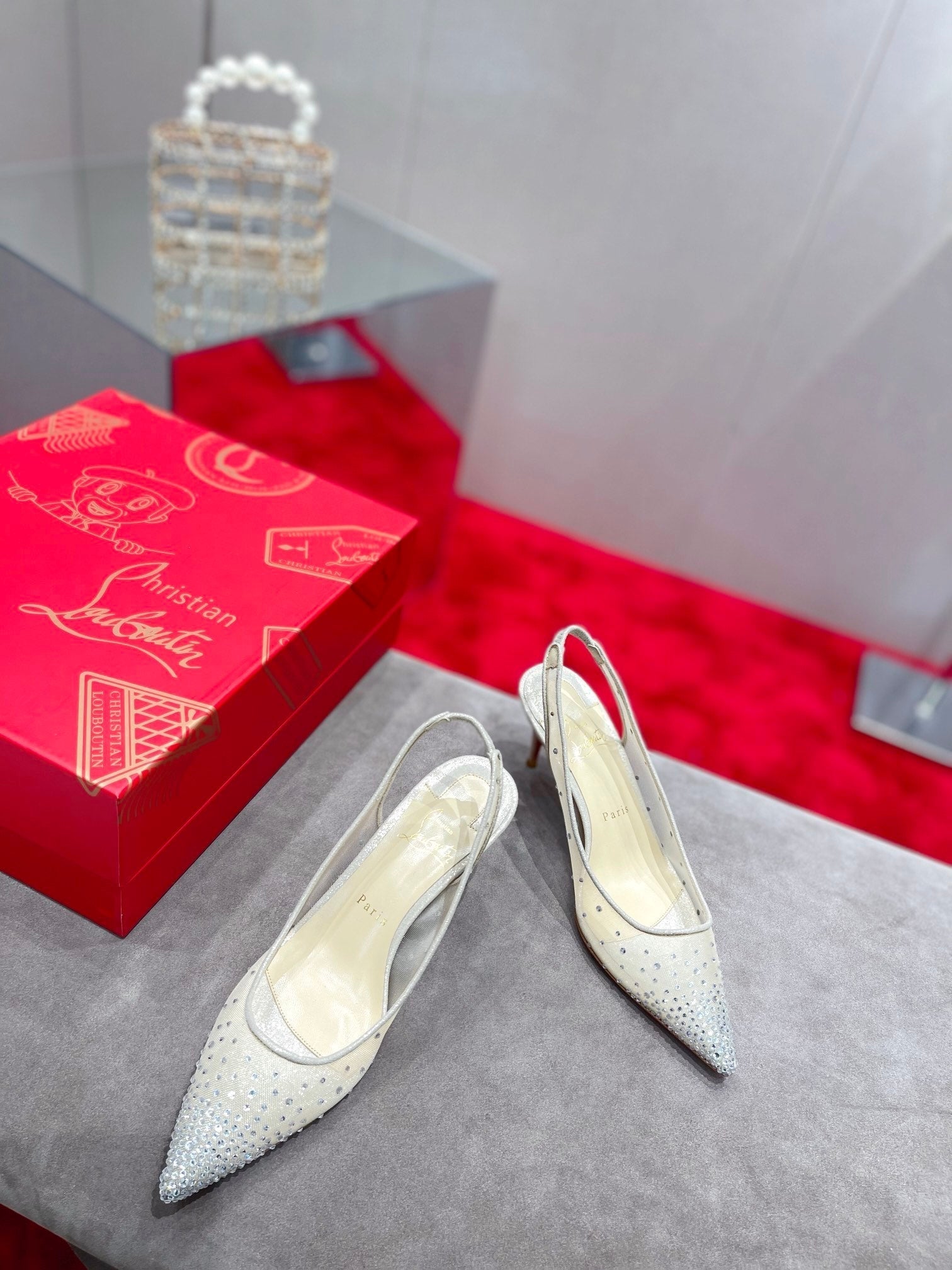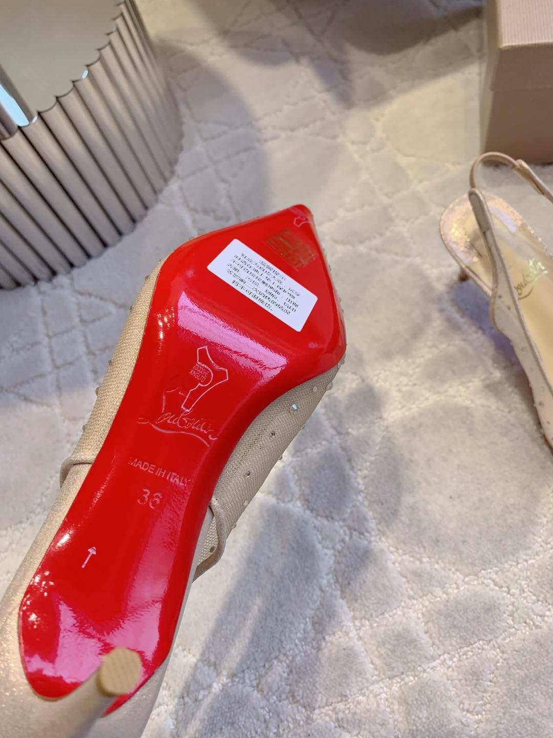 CL Follies Strass Sling Pumps 70mm Fishnet Black