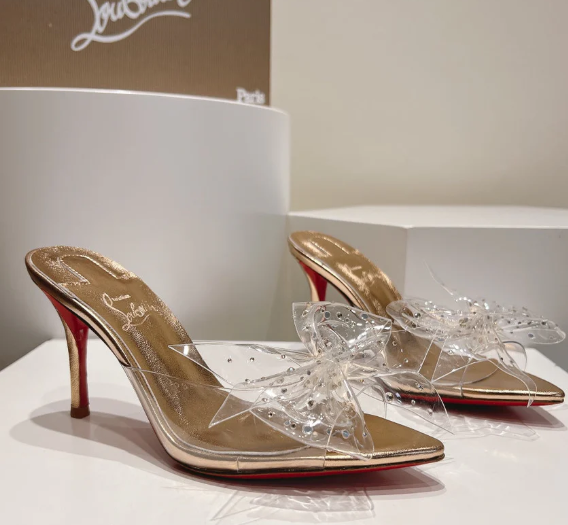 Cl Aqua Strass 80mm Mules Pvc Iridescent Nappa Leather And Strass Gold