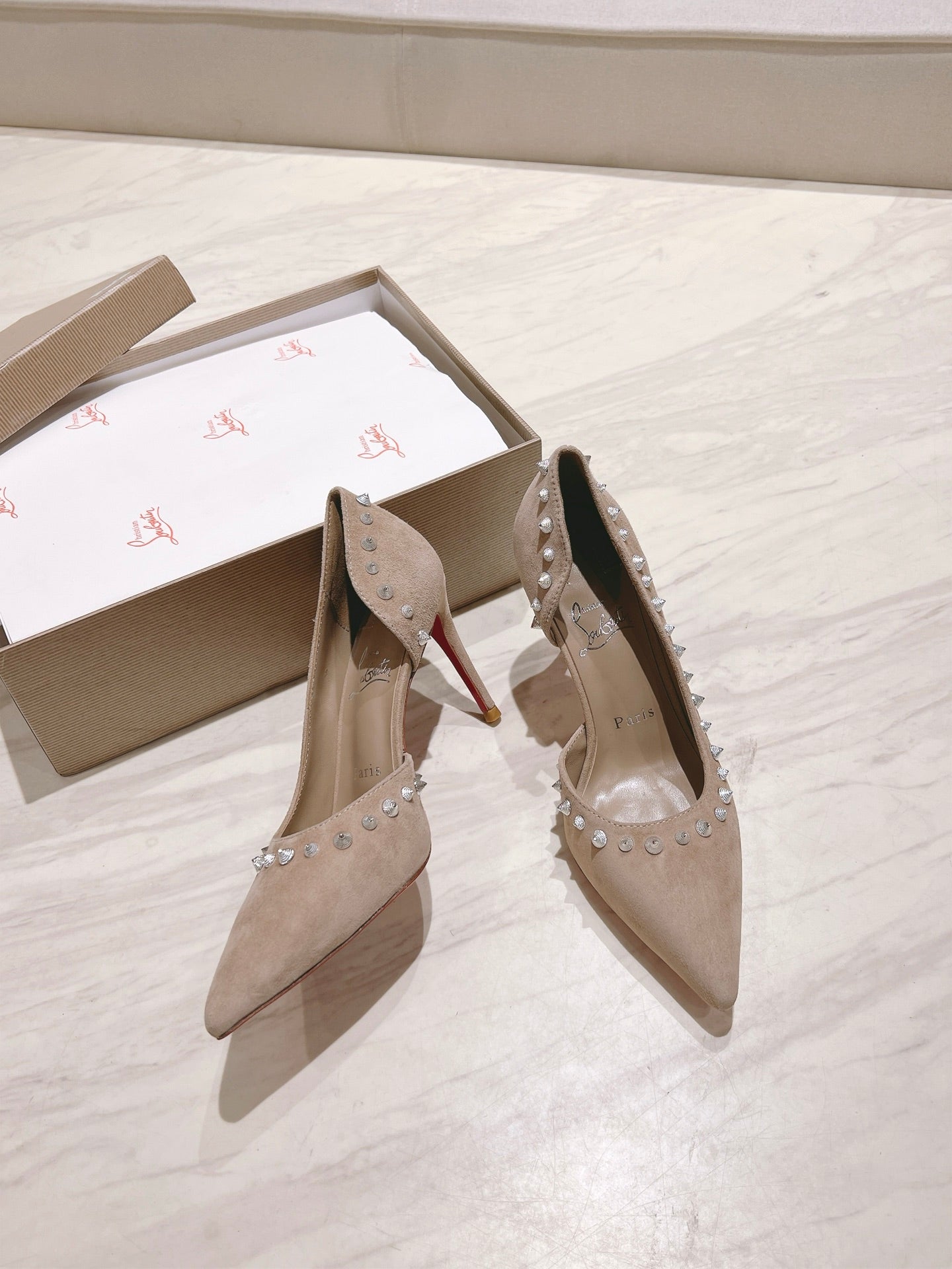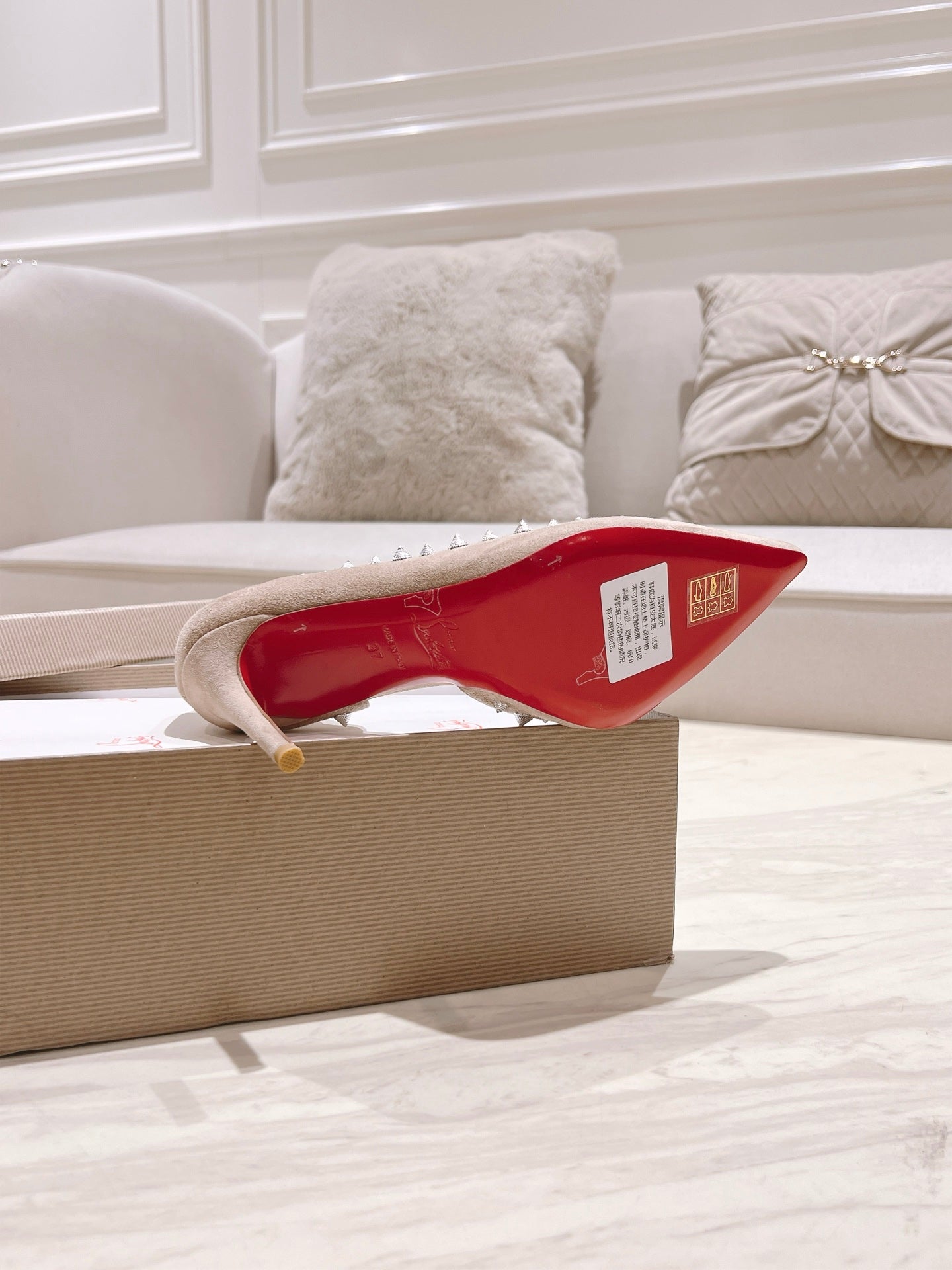 CL Kate Strass Degrade Pumps 100mm Suede Beige