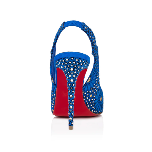 CL Hot Chick Sling Moucharastrass Pumps 70mm Calf Leather Electric Blue