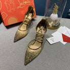 CL Maia Labella 100mm Pumps Strass and Speccchio Leather Gold