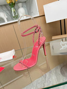 CL So Me 105 mm Strappy Sandal Pink Imported Rivets with Sheepskin 251022