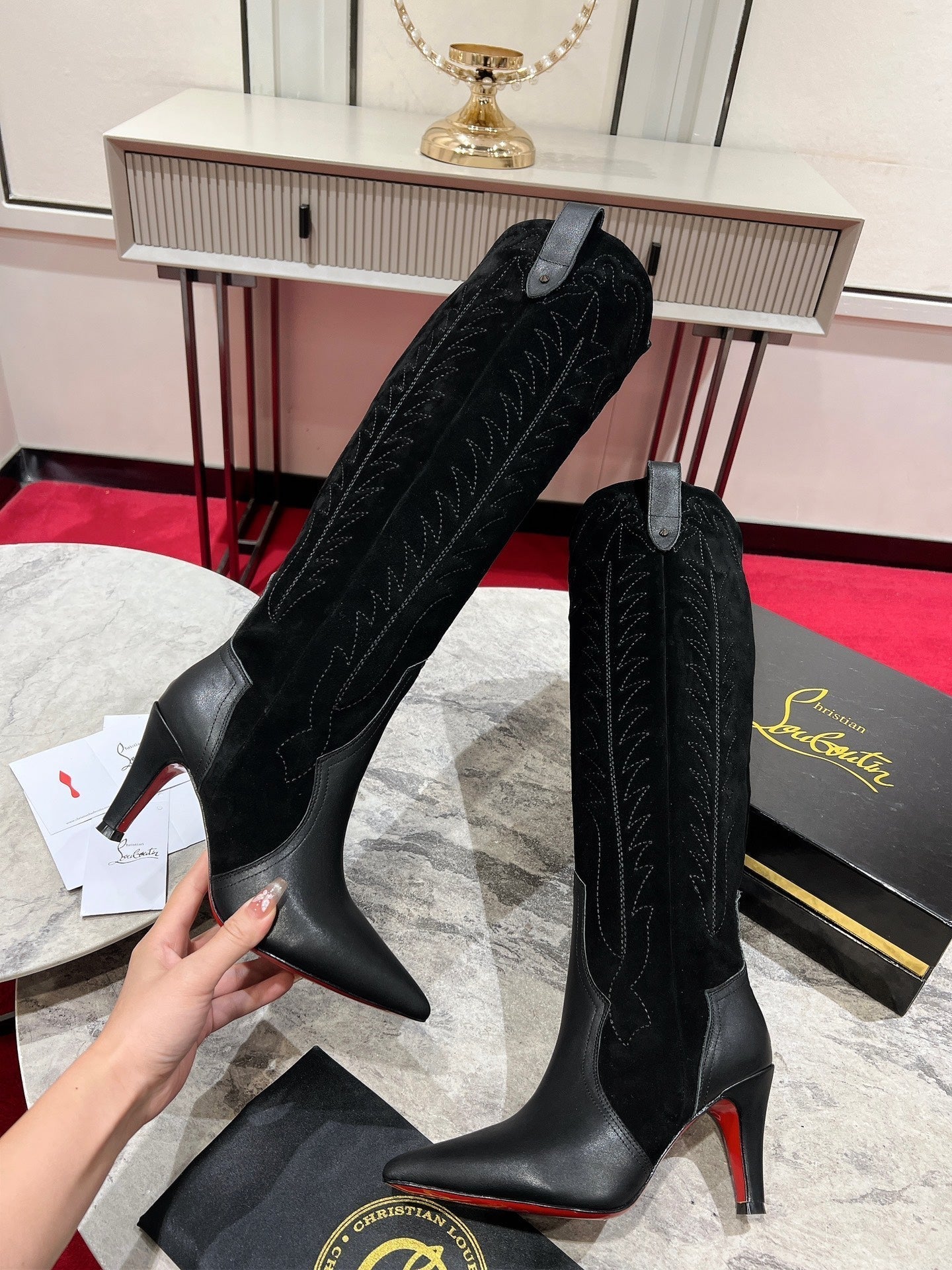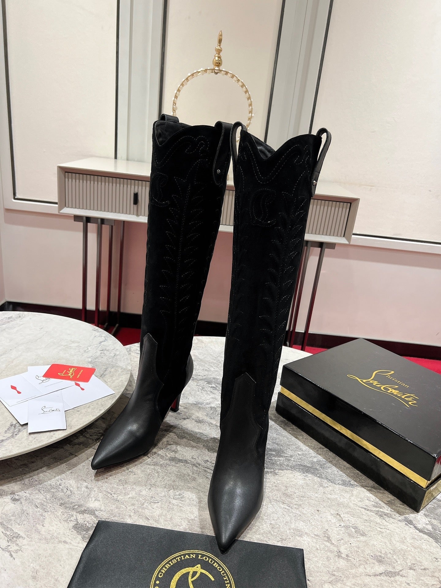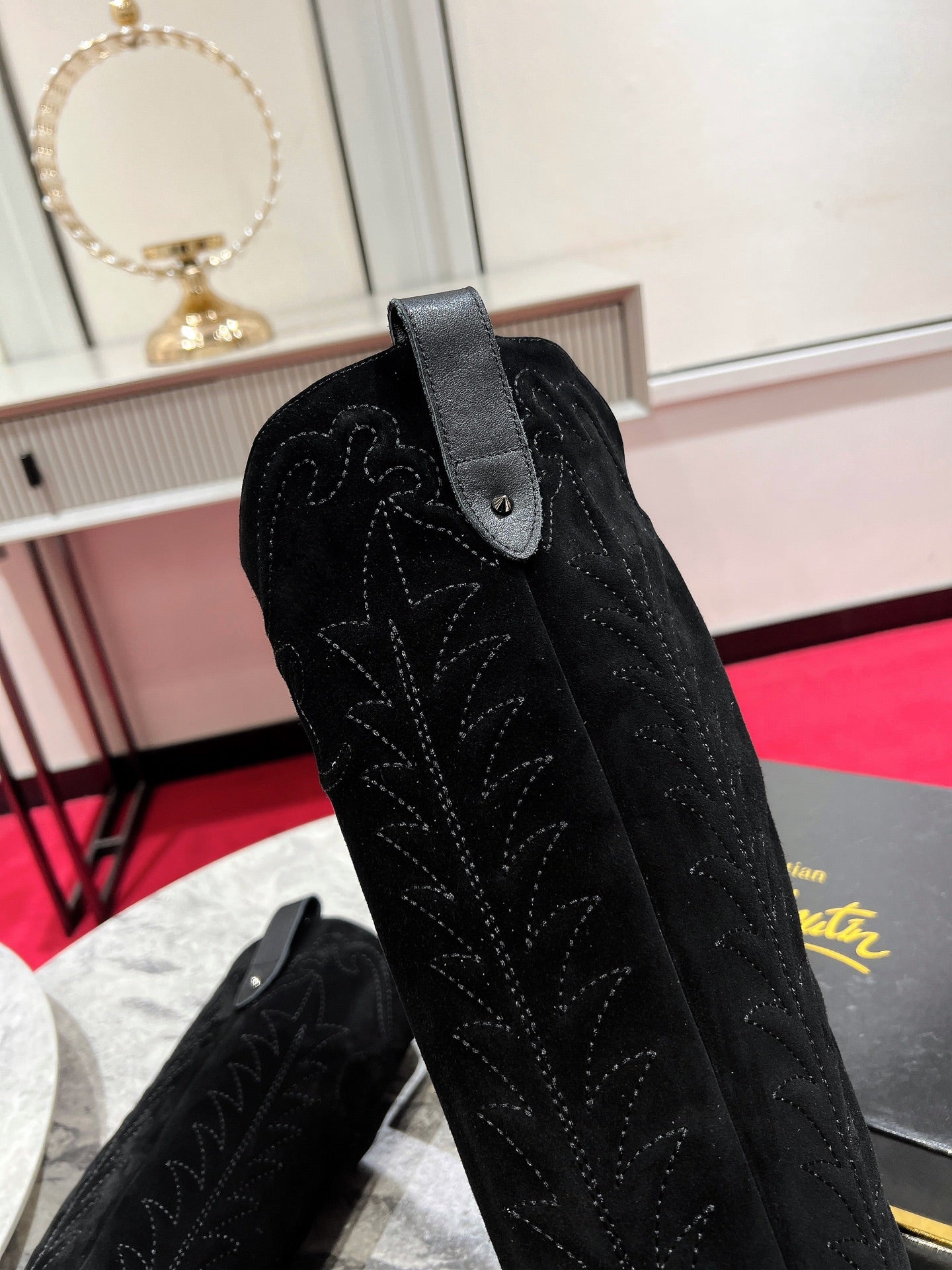 CL Morgan Fleur Knee High Boots Velvet with Crystals Black