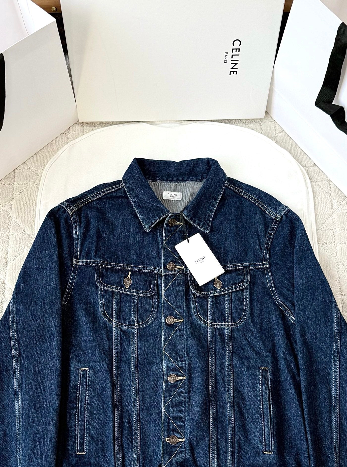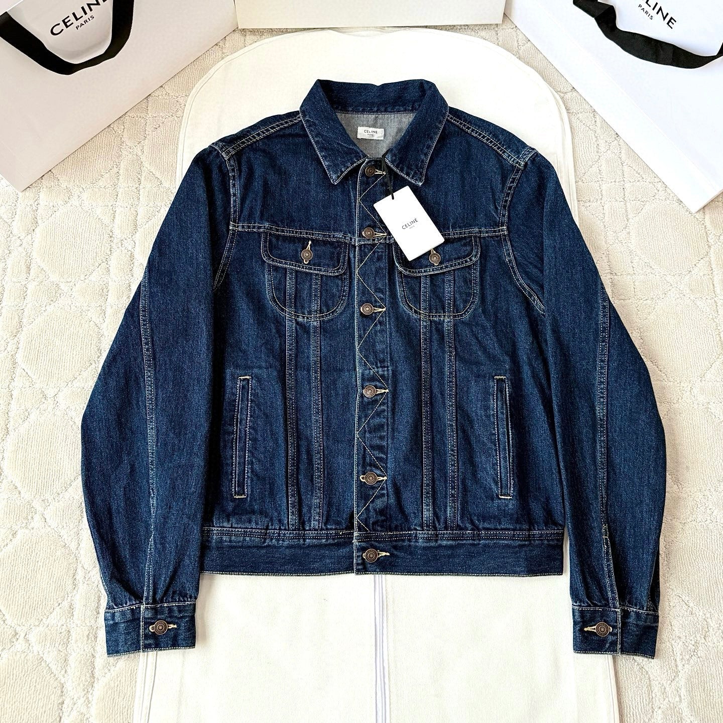 Celine 25 Denim Jacket Blue White Cotton