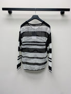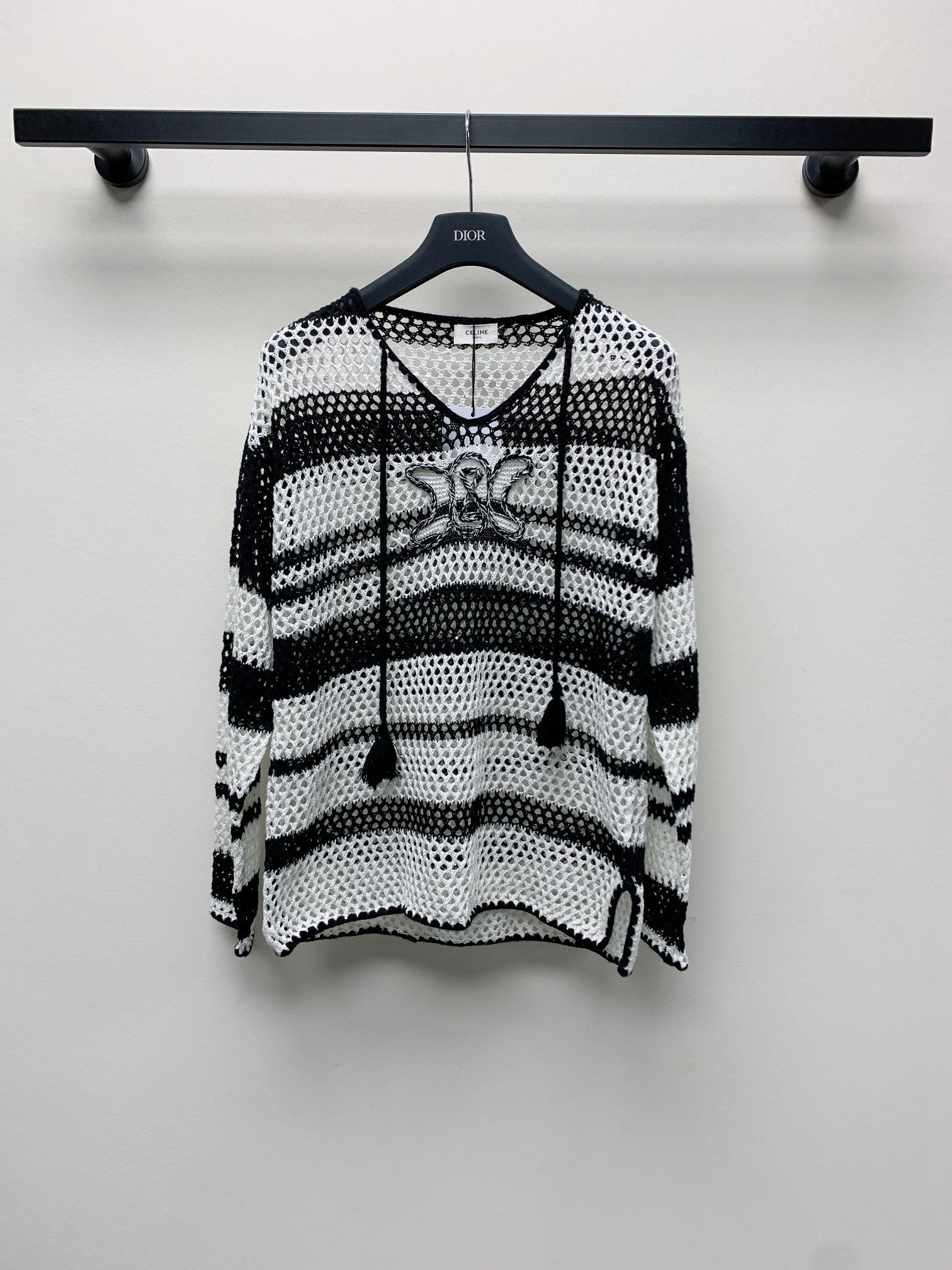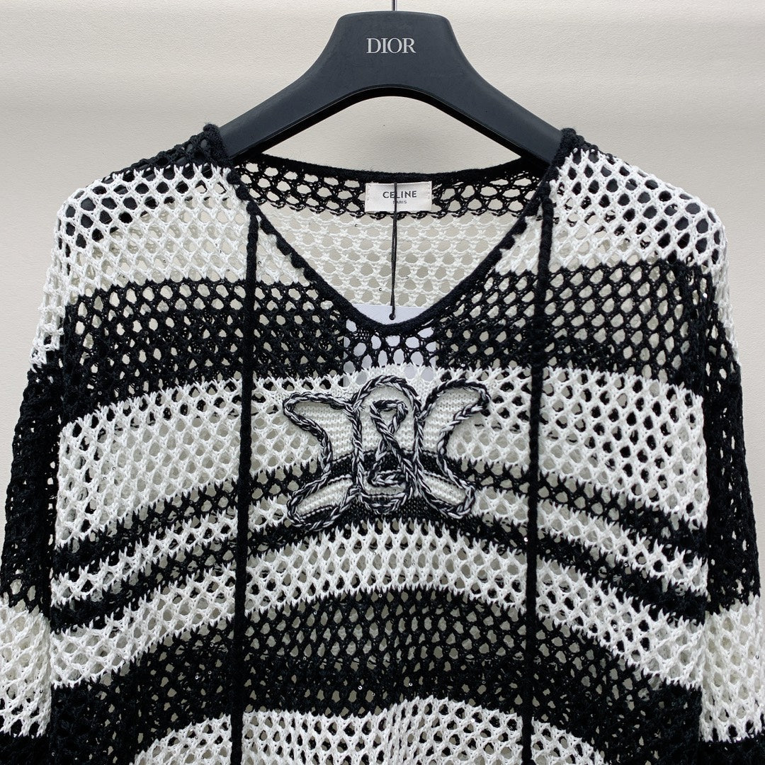 Celine 25 Hollow Crochet Cardigan Black White Wool Polyester 277568