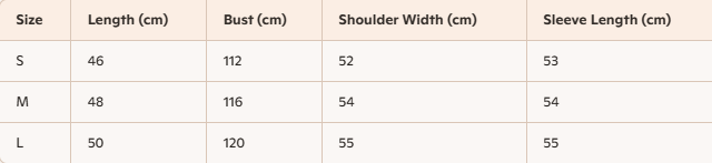 - Size : S, M,L