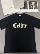 Celine Gothic Embroidered Plain Loose T-shirt Black Cotton