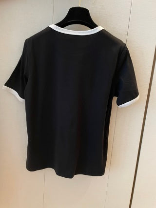 Celine Letter Logo Short-sleeved T-shirt Black and White Cotton