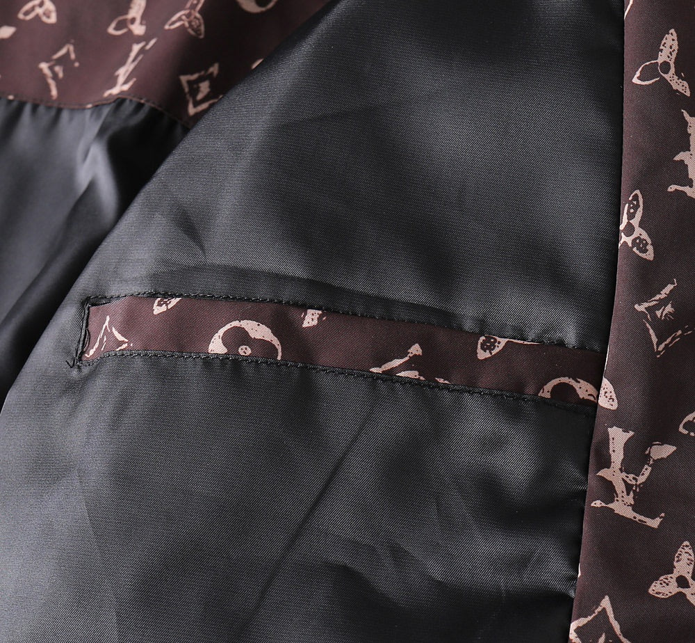 LV HOODED JACKET IN BLACK DAMIER AND BROWN TRIM 239036
