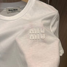 Miu Miu Letter Logo Patch Embroidered T-shirt Cotton
