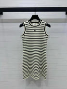 Triomphe Striped Mini Dress Black White Crocheted Cotton