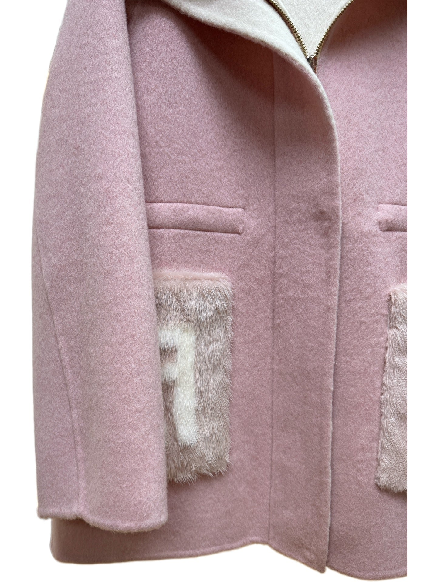 Chanel 2025 Fur-sleeved Crew Neck Cardigan Light Gray Polyester Wool 319594