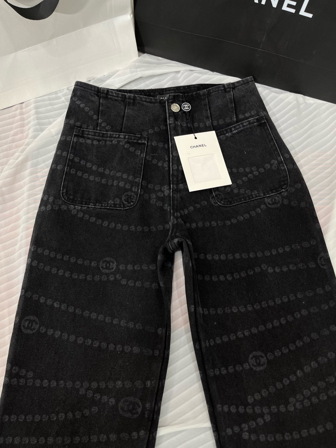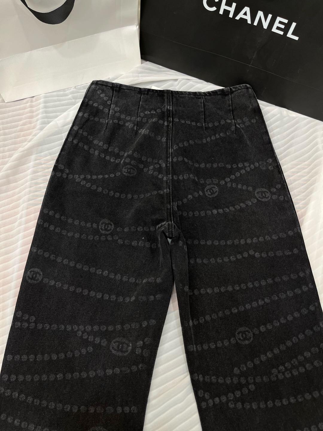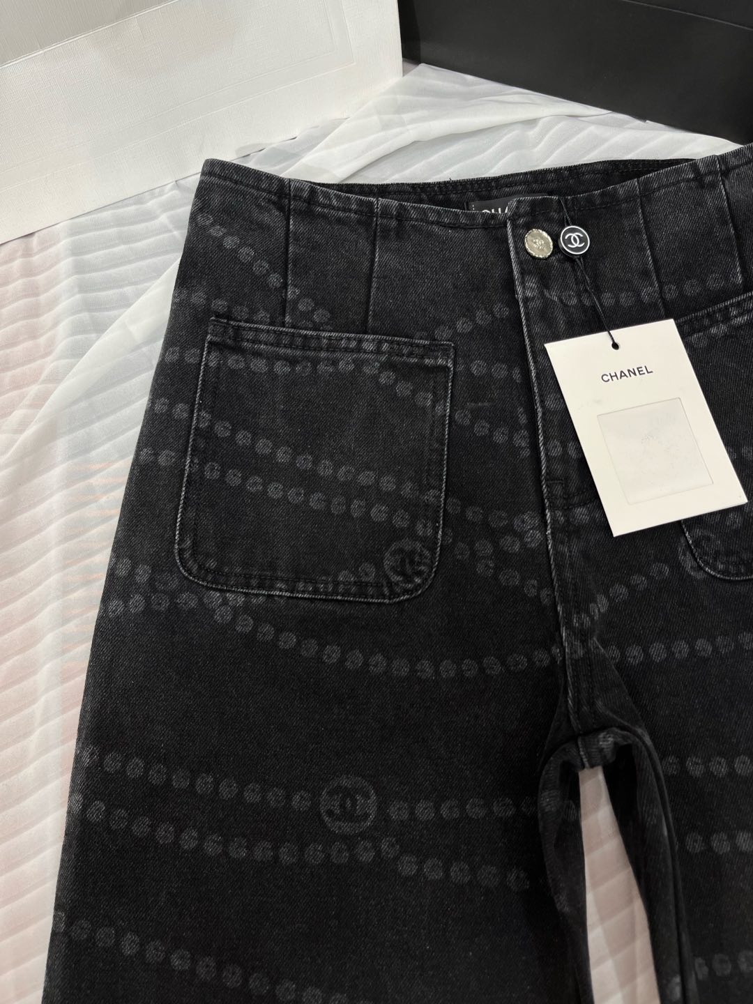 Chanel 2025 Rhinestone Flared Jeans Black Cotton 319004