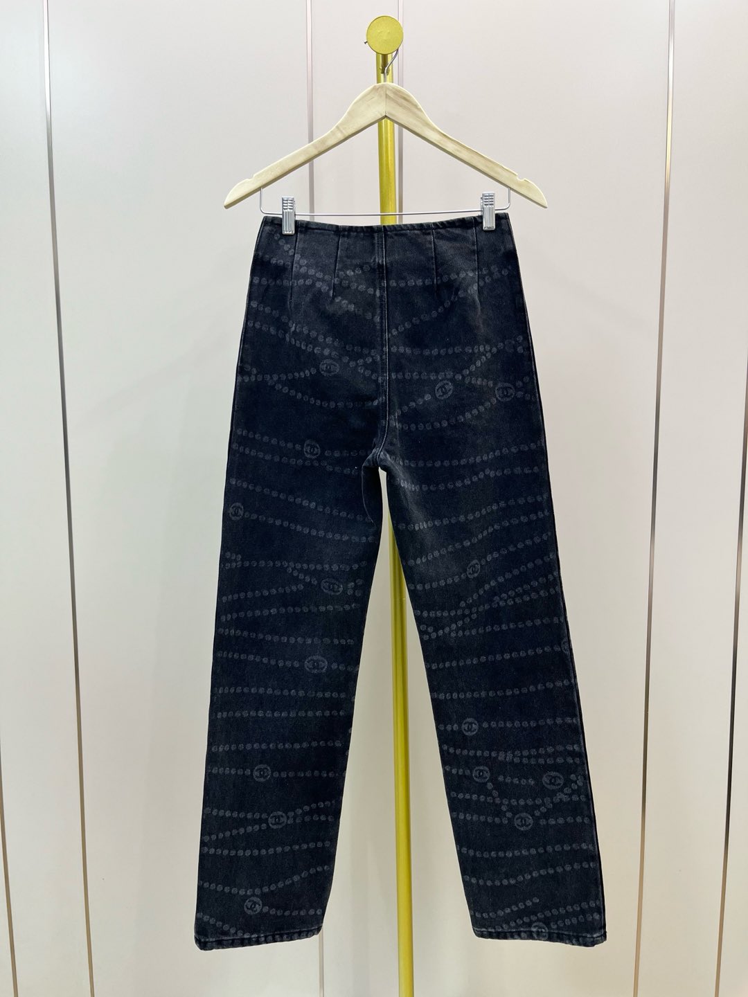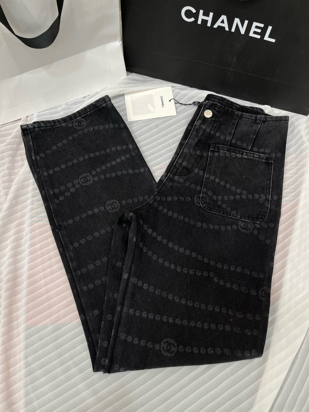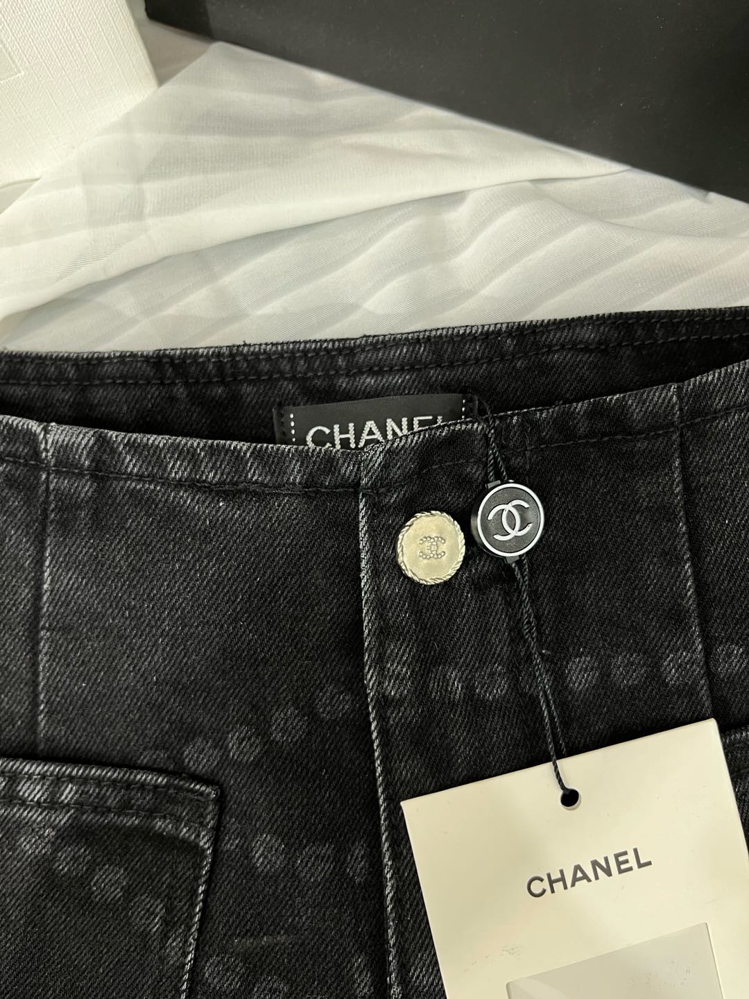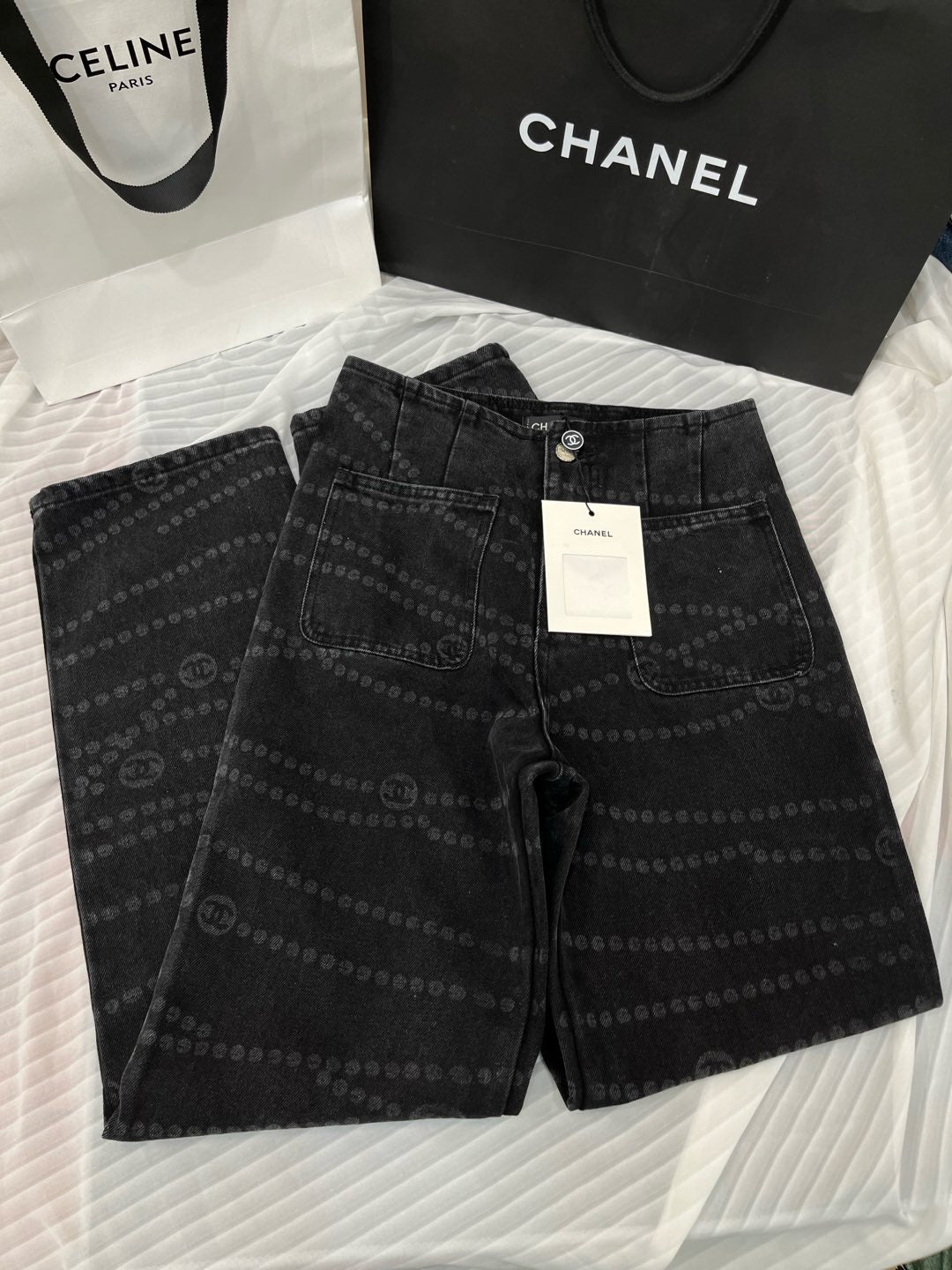 Chanel 2025 Rhinestone Flared Jeans Black Cotton 319004