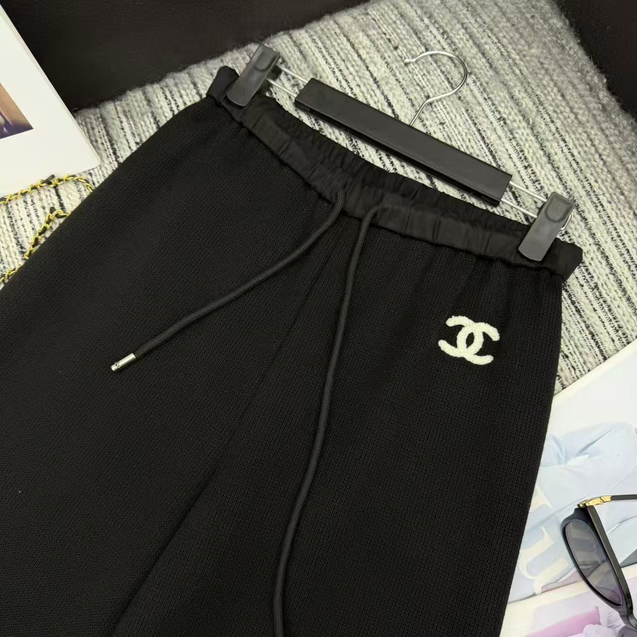 Chanel 2025 Gold Buckle Two-Piece Skirt Black Woven Tweed Fabric 319481