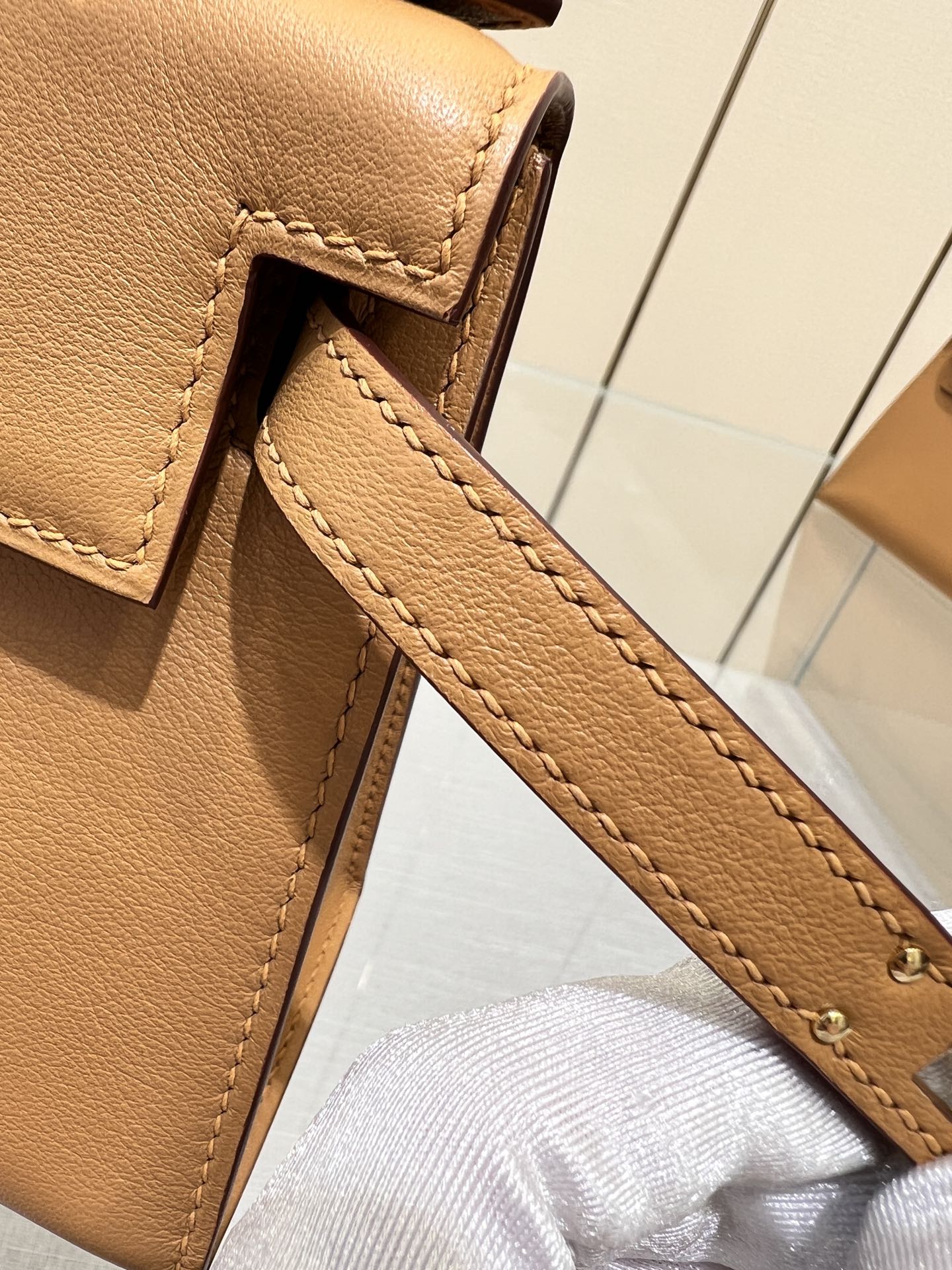 HM KELLY POCHETTE 22CM WHITE BEIGE SWIFT GOLD HARDWARE BEST