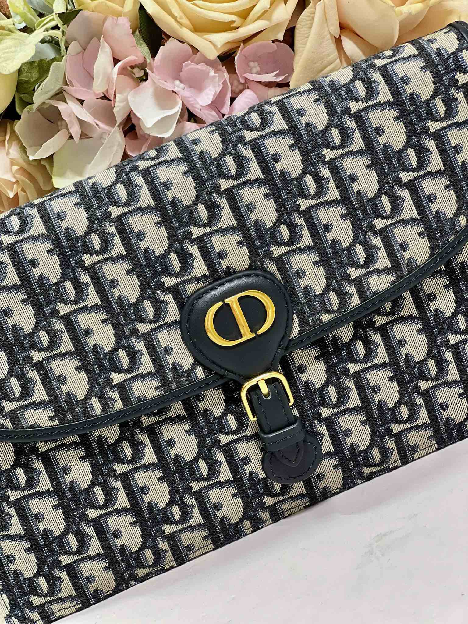 CD Saddle Pouch With Chain Blue Obique Embroidery