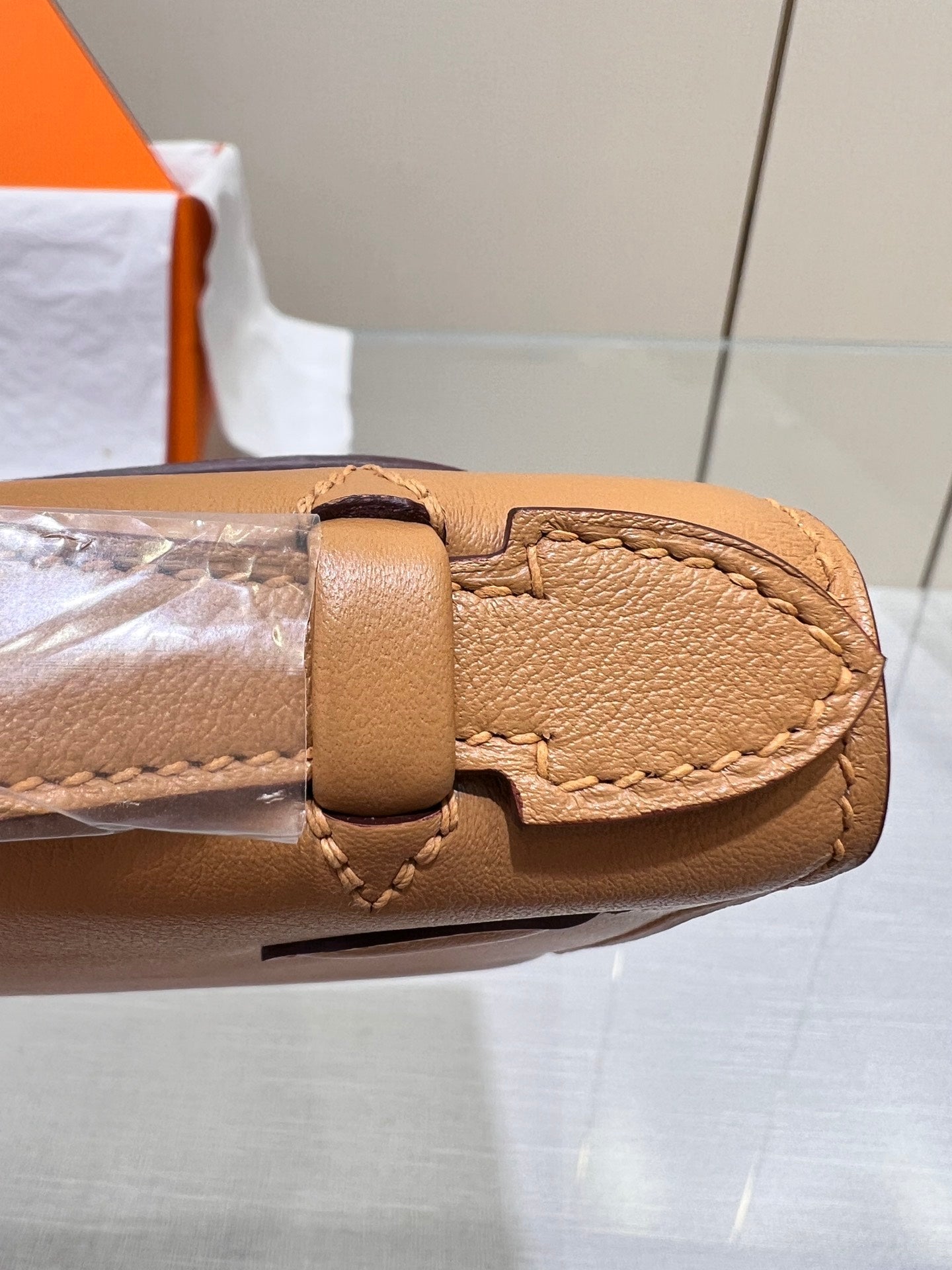 HM KELLY POCHETTE 22CM BROWN SWIFT GOLD HARDWARE
