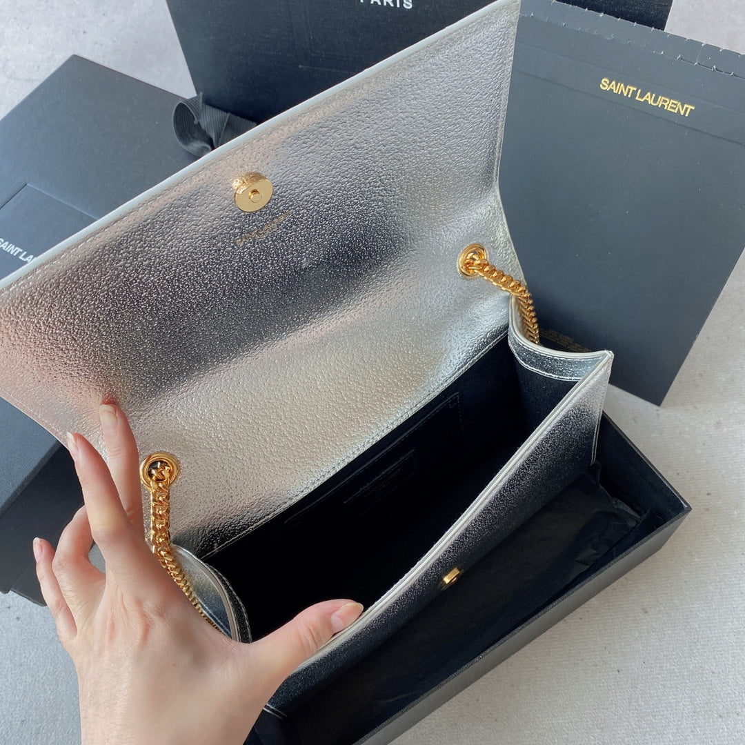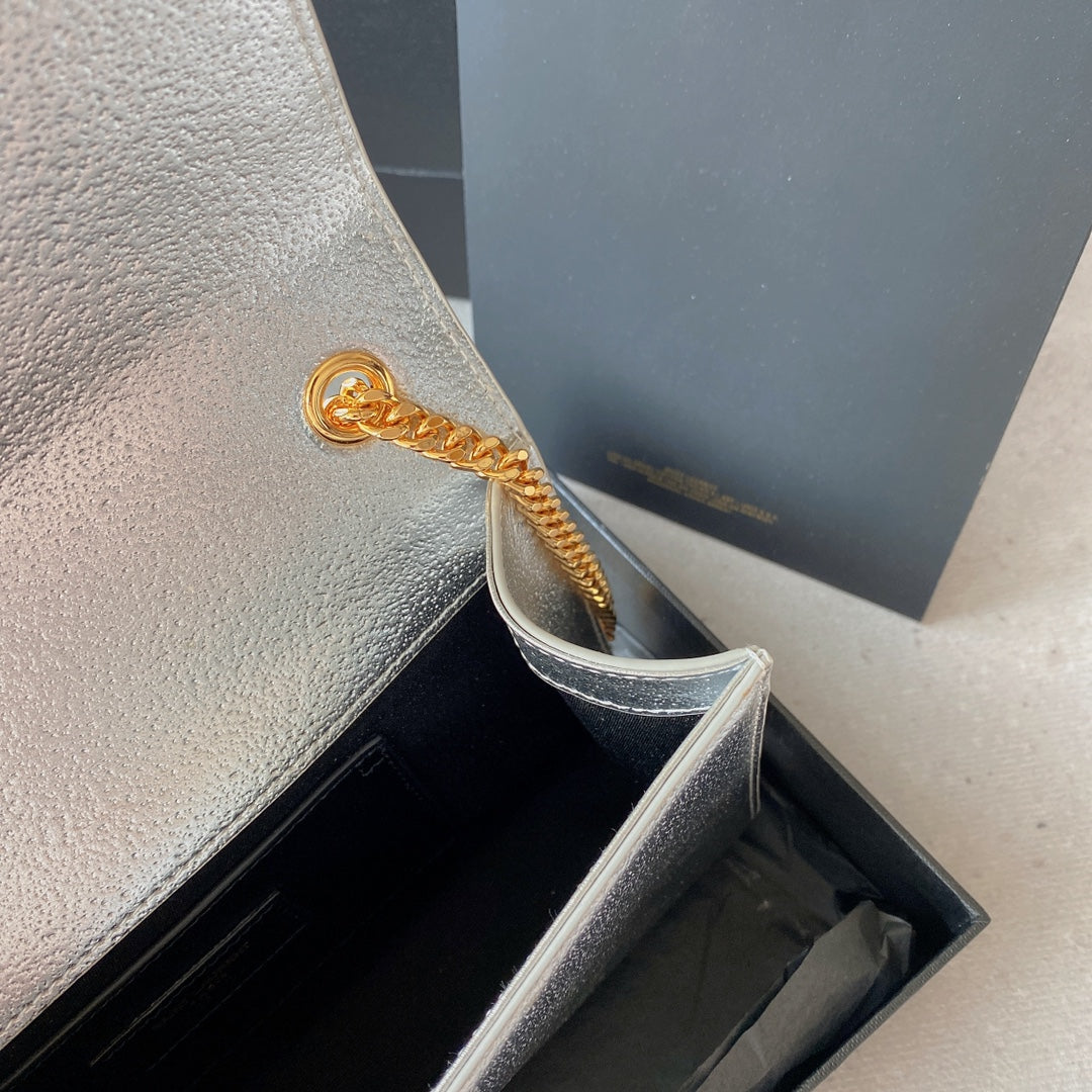 kate medium 24cm silver metalic calfskin gold hardware