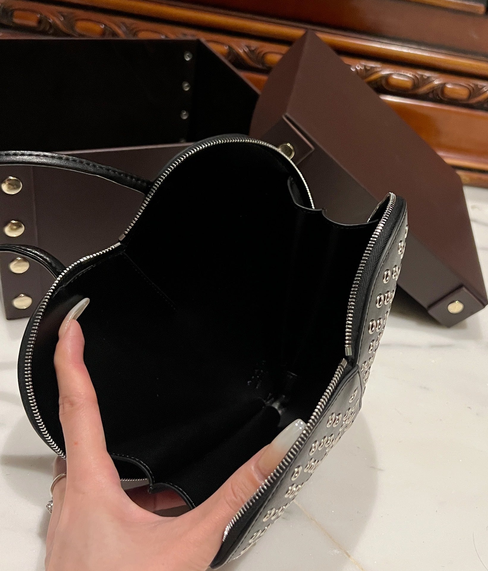 Le Coeur 21cm Black Metal Rivet Calfskin Shouder 243048