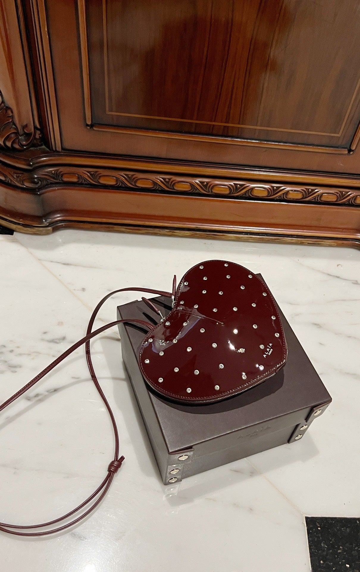 Le Coeur 21cm Burgundy Diamonds Calfskin Shouder 243042