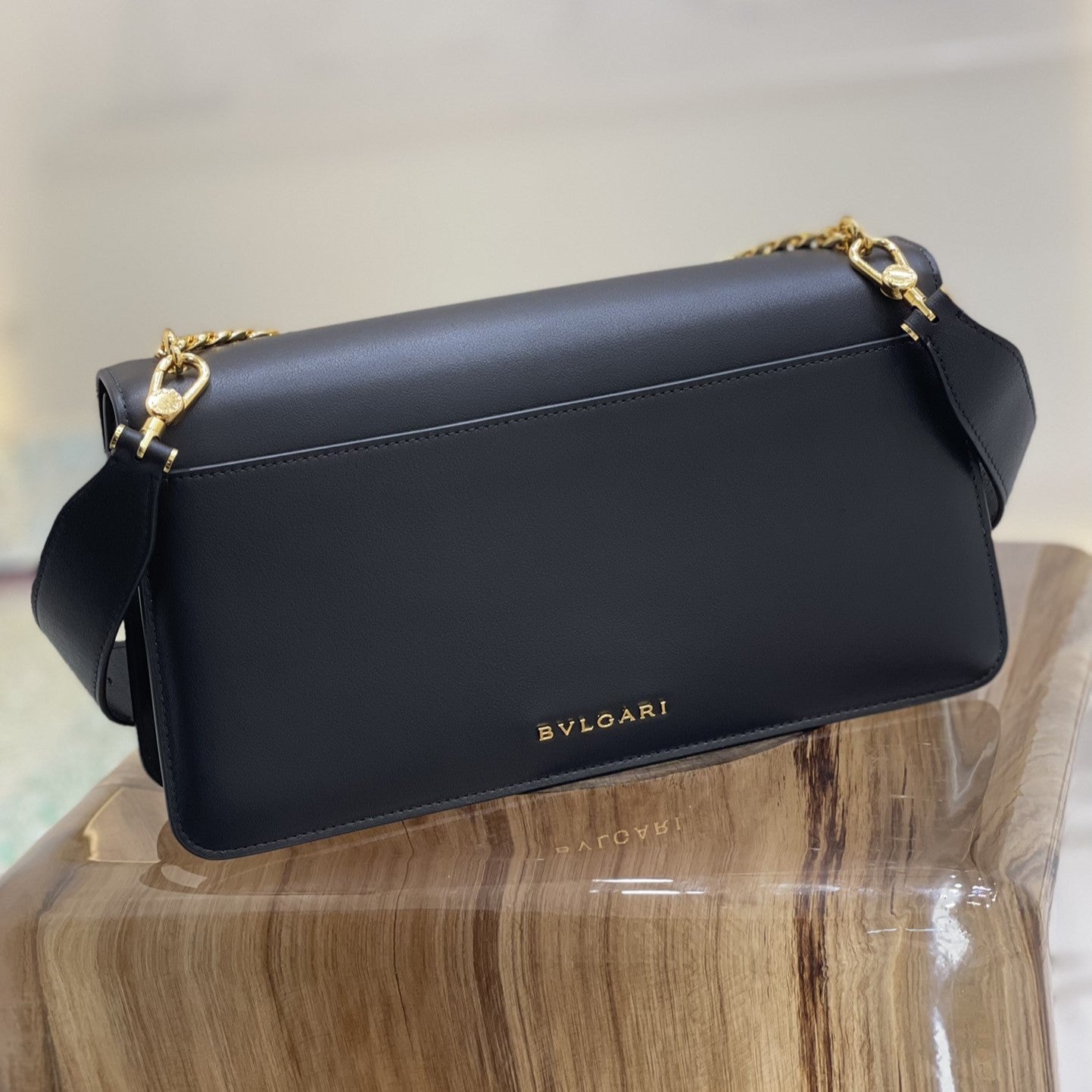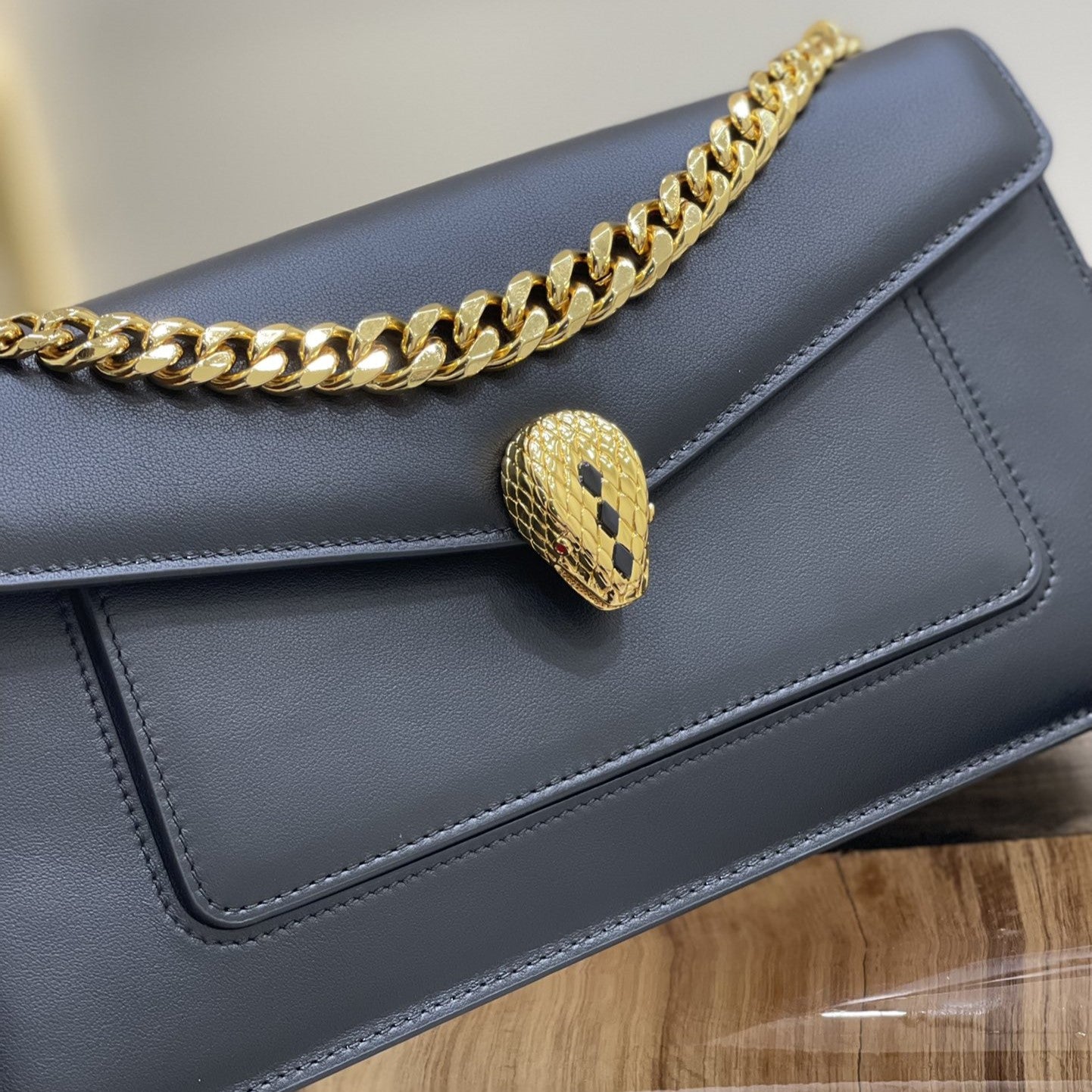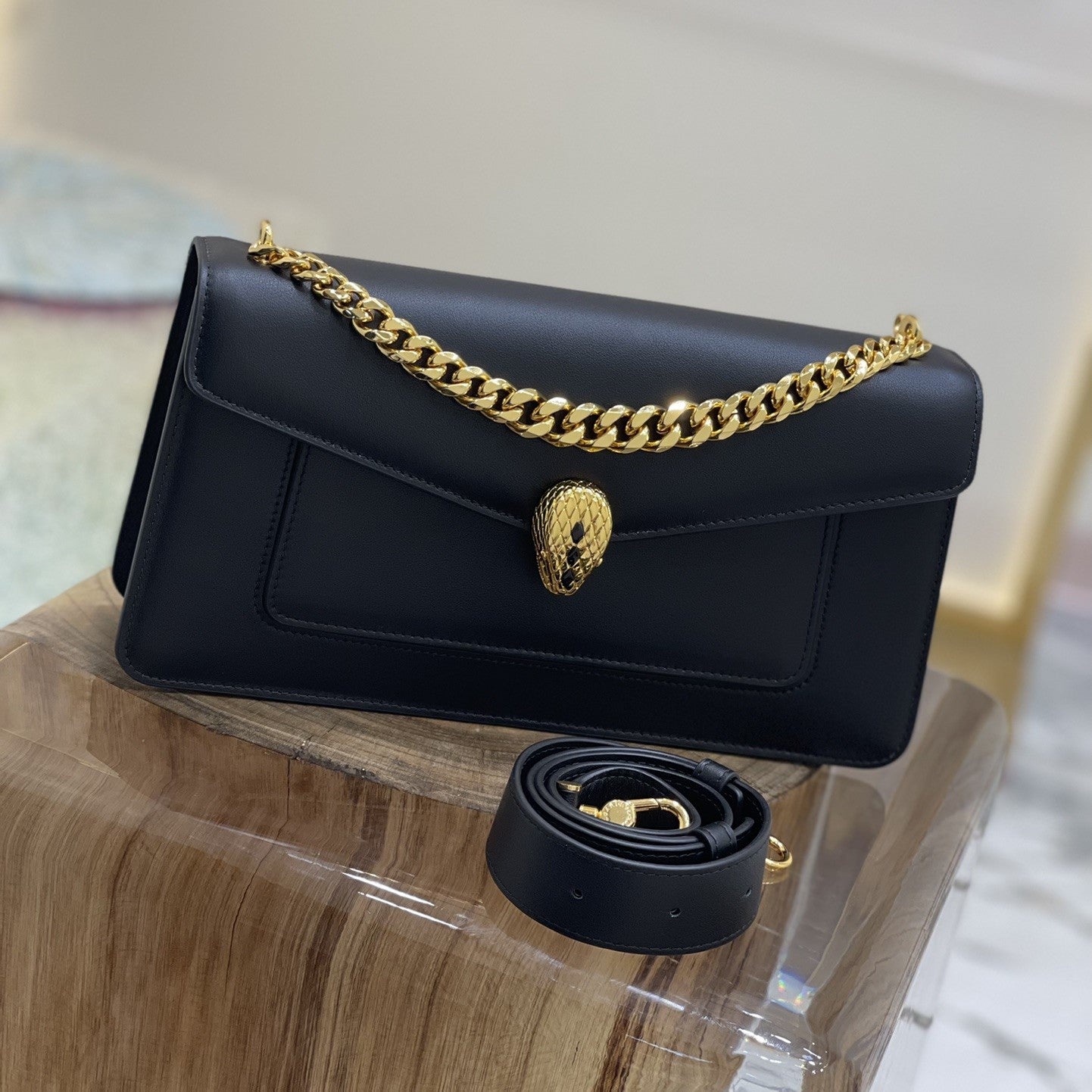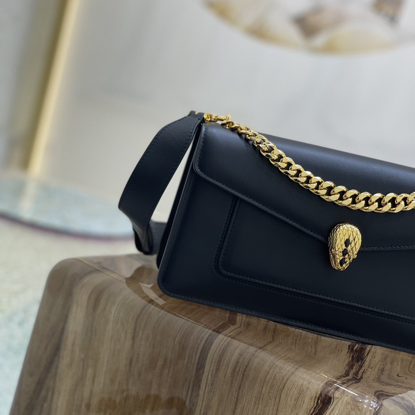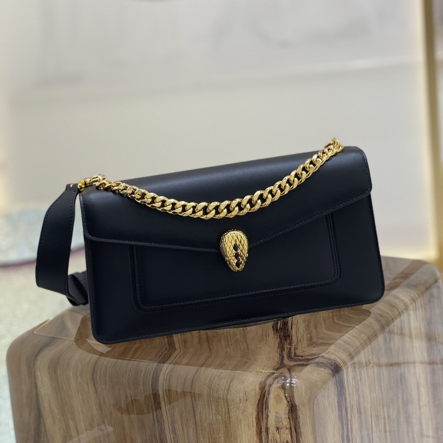 SERPENT EAST-WEST MAXI CHAIN SHOULDER 28CM BAG BLACK CALFSKIN