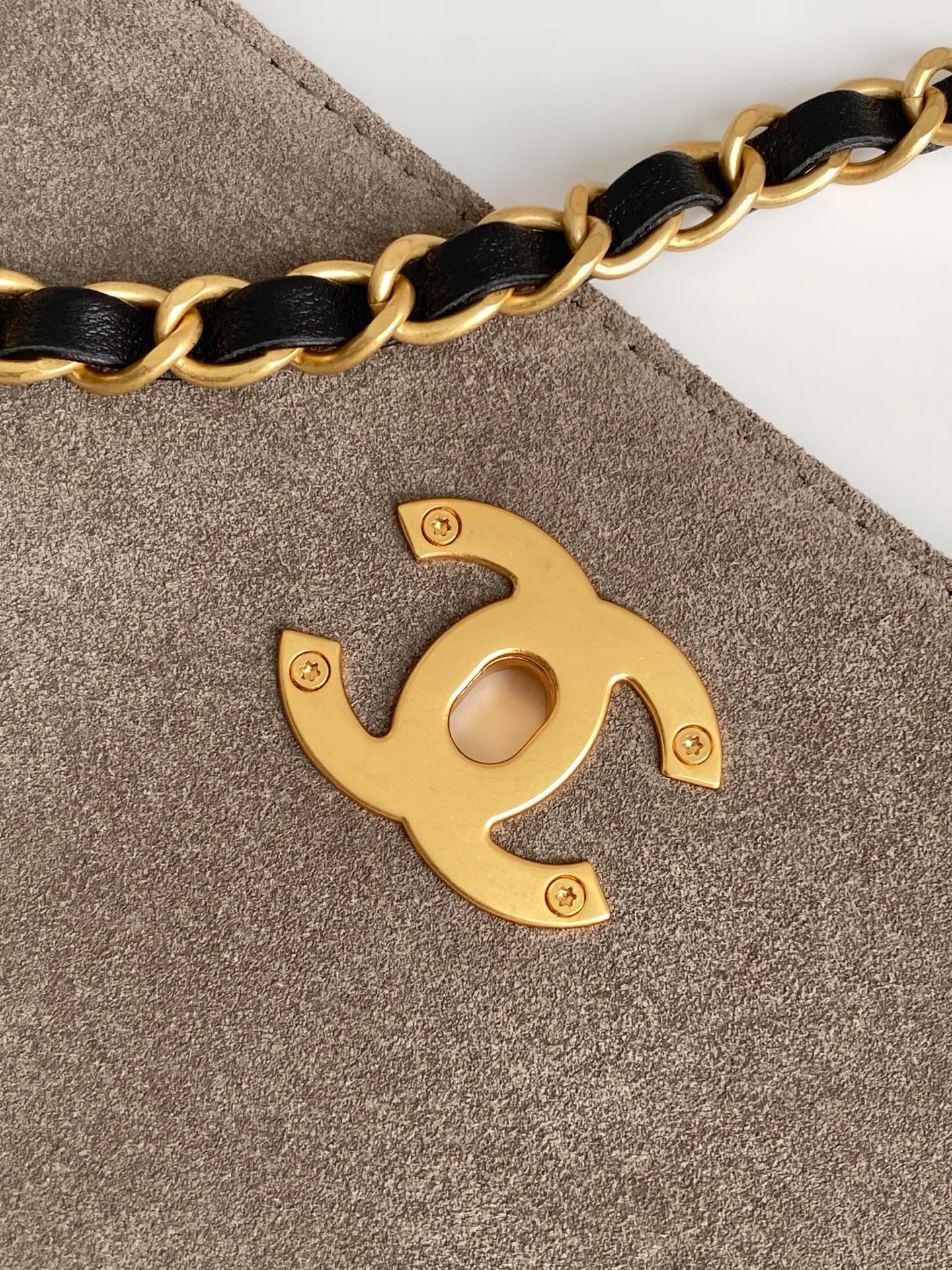 CC 25A Flap Bag 29cm Grey Suede Black Calfskin