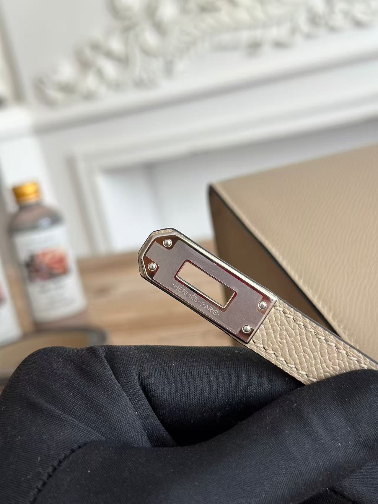 HM KELLY 25CM GREY EPSOM LEATHER SILVER HARDWARE