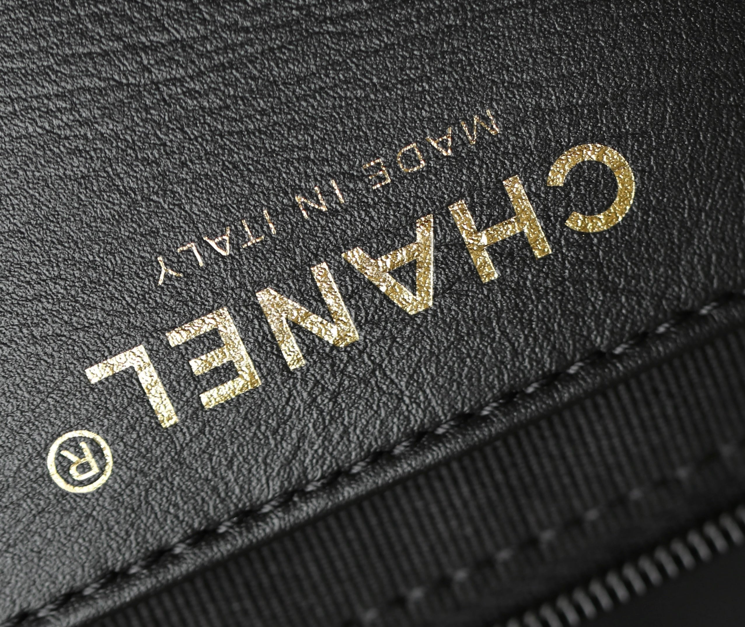 CC Caviar Flap Bag 17.5 Gold Logo Black Calfskin