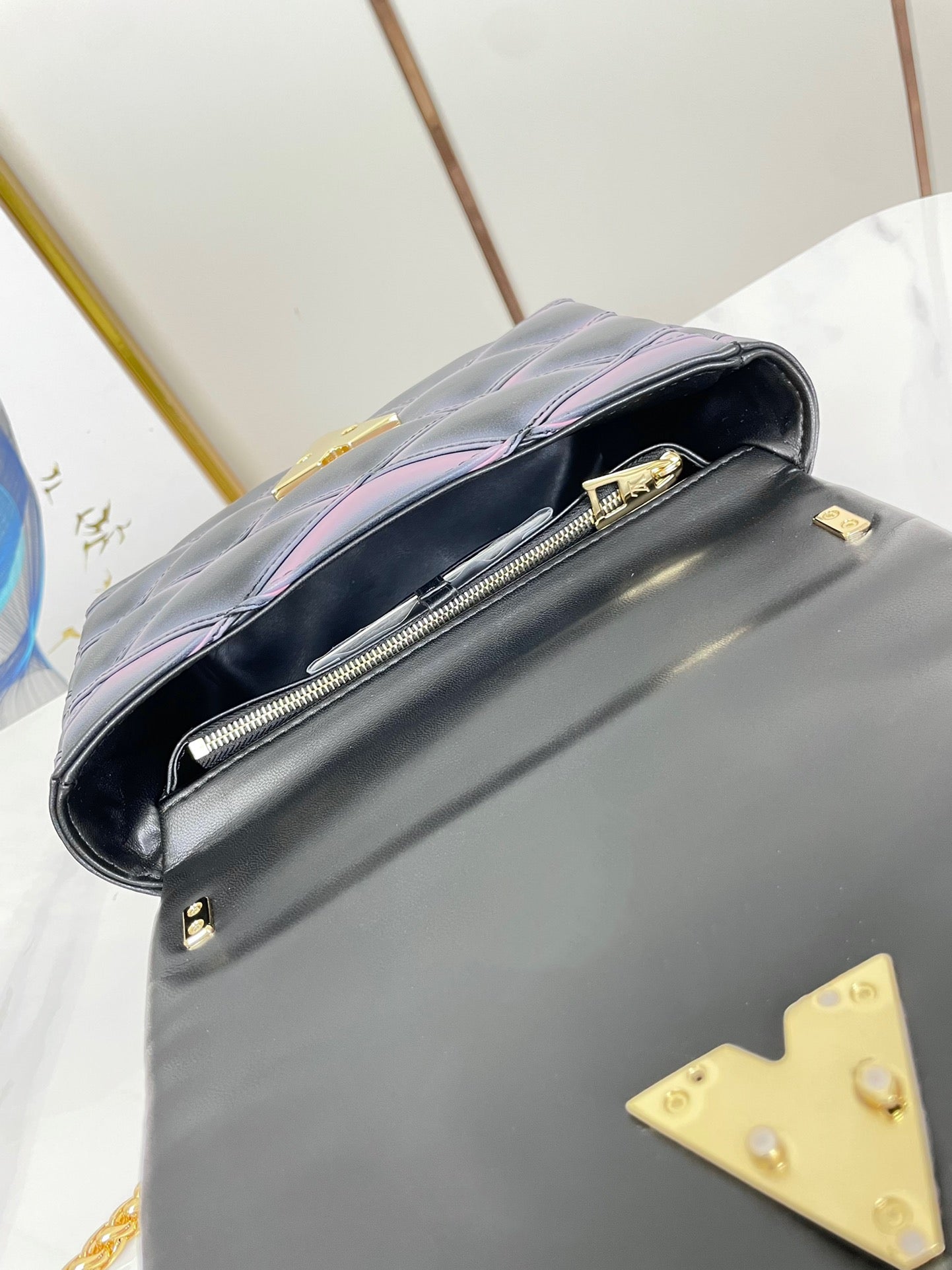 MINI SQUARE FLAP BAG 17CM BLACK LAMBSKIN LIGHT GOLD HARDWARE