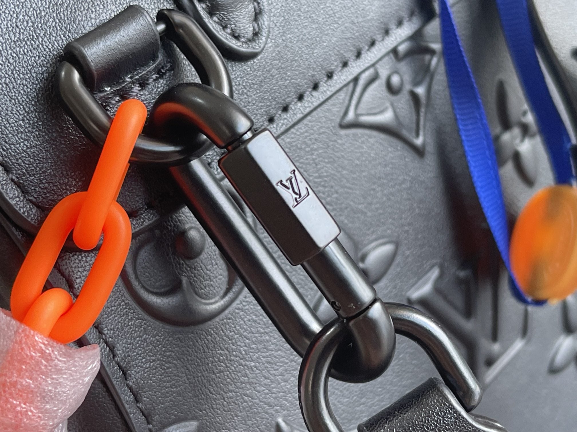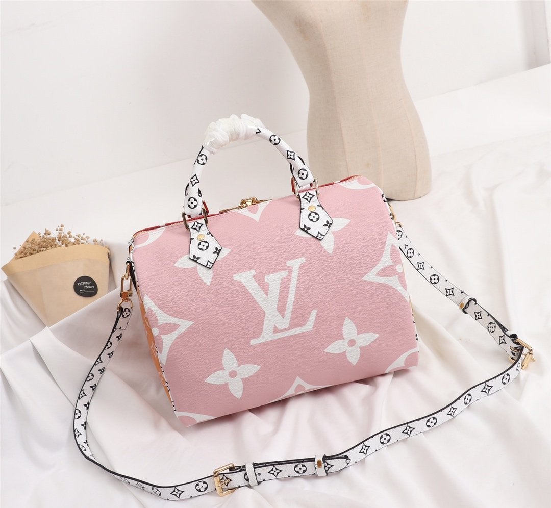 SPEEDY 22 PINK BLACK MONOGRAM EMBOSSED LAMBSKIN