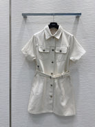 CD 2025 Short-sleeved Shirt Dress Light Beige Cotton