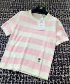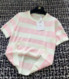 CD 2025 Striped Short-sleeved T-shirt Pink White tencel 606660